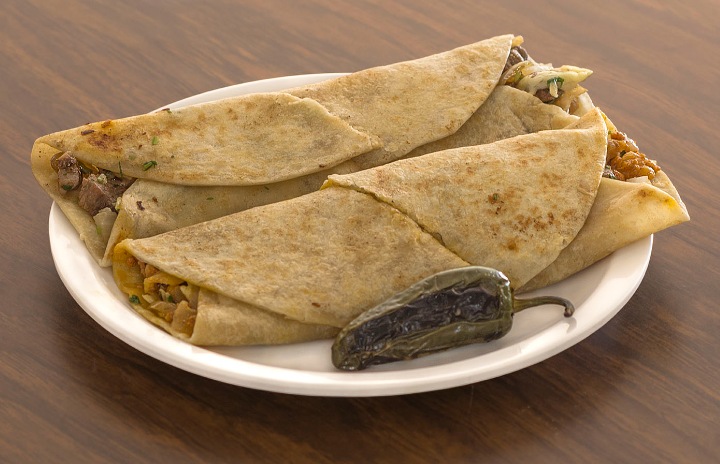 Con queso asadero. Incluye salsa, cebolla y cilantro aparte.