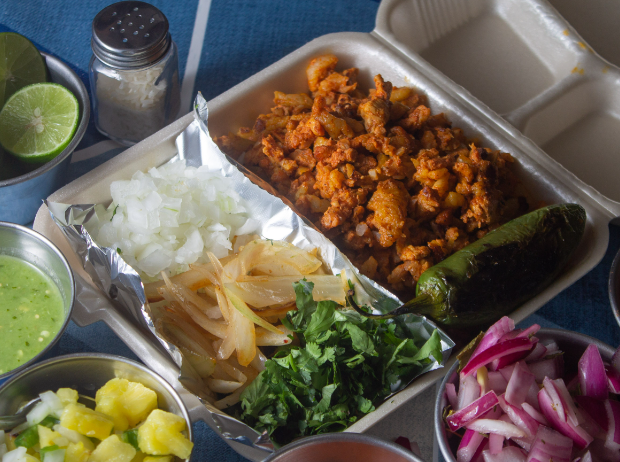 Kilo de carne preparada de tu preferencia, salsas, verdura, tortillas de harina, maíz, chiles, cebollas asadas