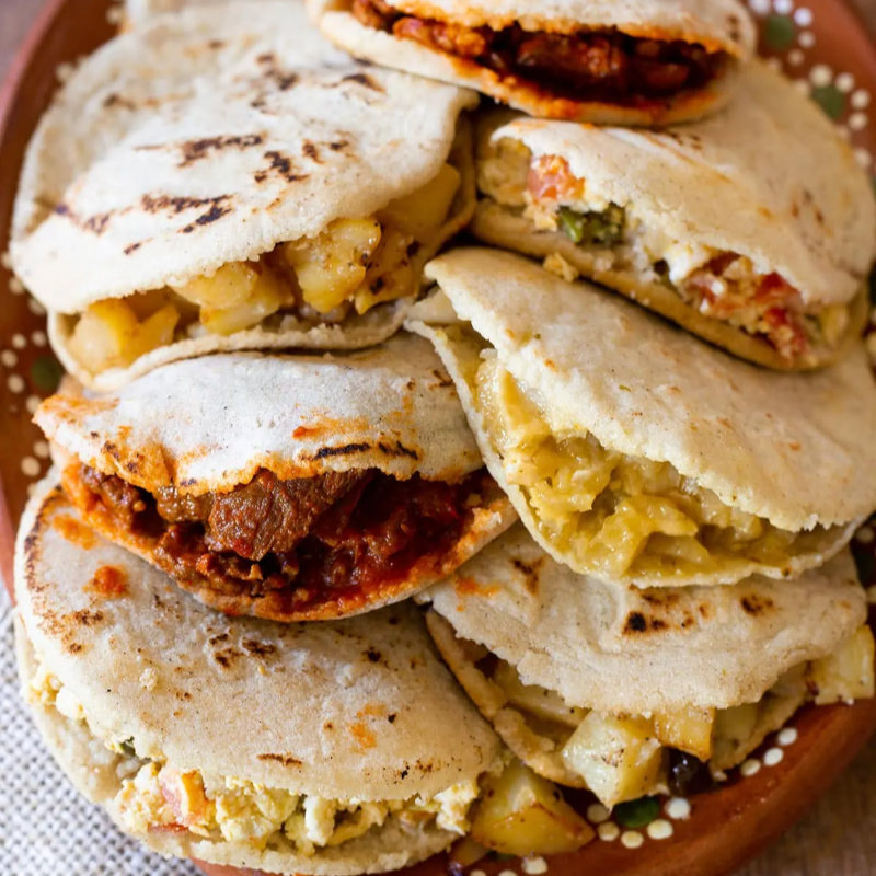CON QUESO ASADERO DE ALTA CALIDAD MAS ENSALADAS Y SALSAS EN EXISTENCIA MAS VERDURAS . LIMON CILANTRO CEBOLLA