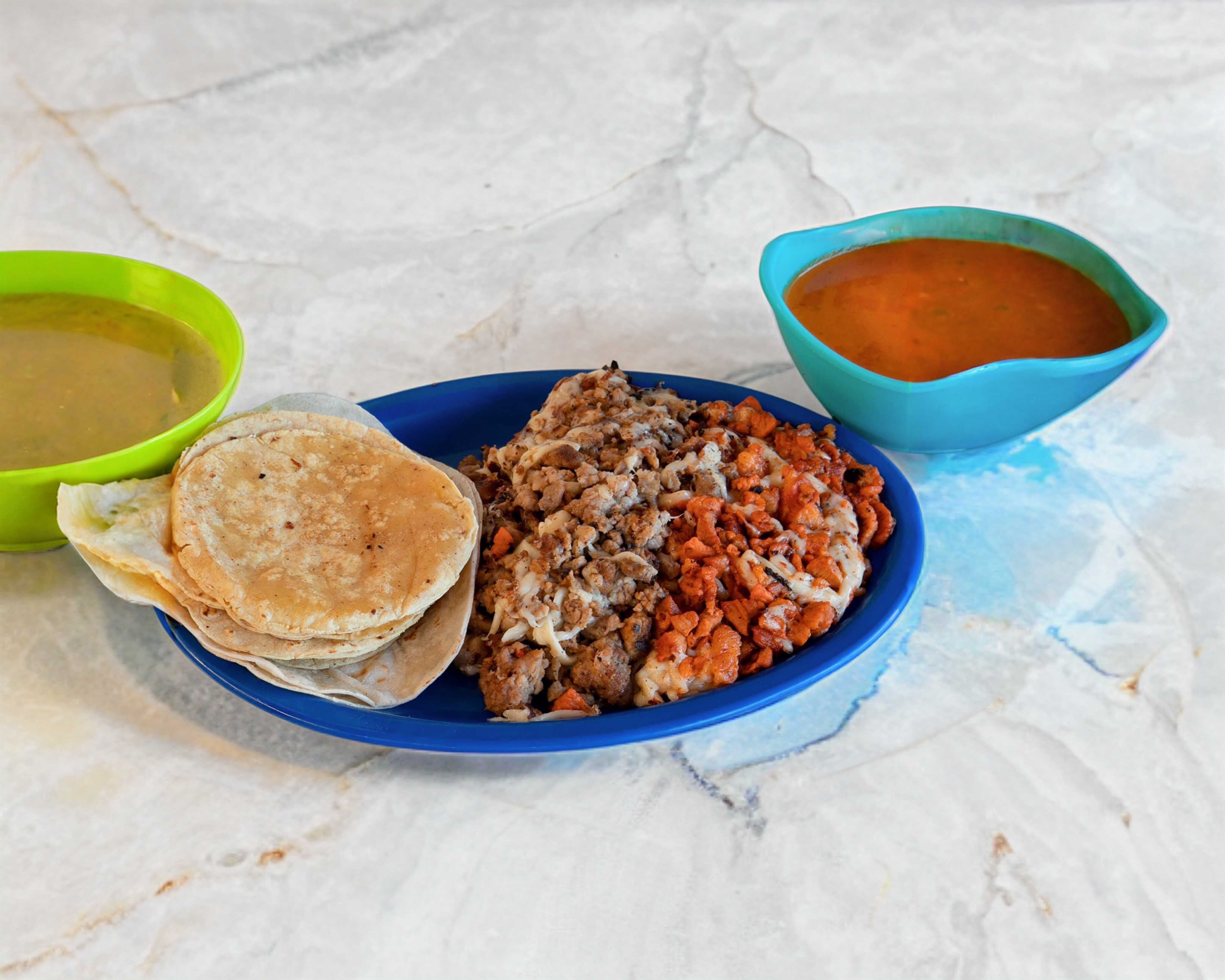 QUEKA DE BISTEC TRADICIONAL 2 TORTILLAS DE LECHUZA,salsas