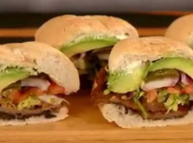 Deliciosa torta de milanesa, queso, aguacate, cebolla, jitomate, mayonesa, incluyen chiles toreados y chiles en vinagre.