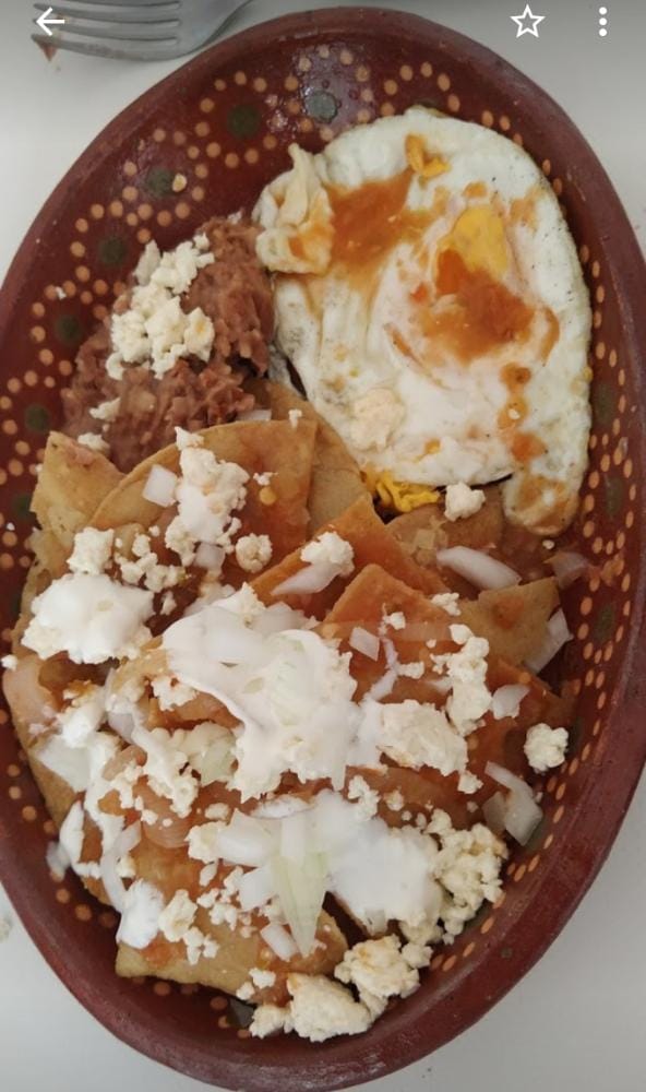 Deliciosos chilaquiles acompañados de huevito, frijoles y el guiso a elegir.