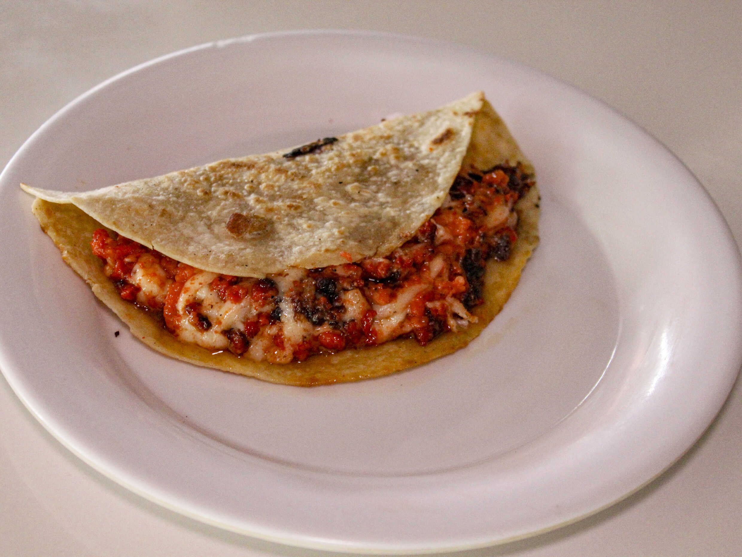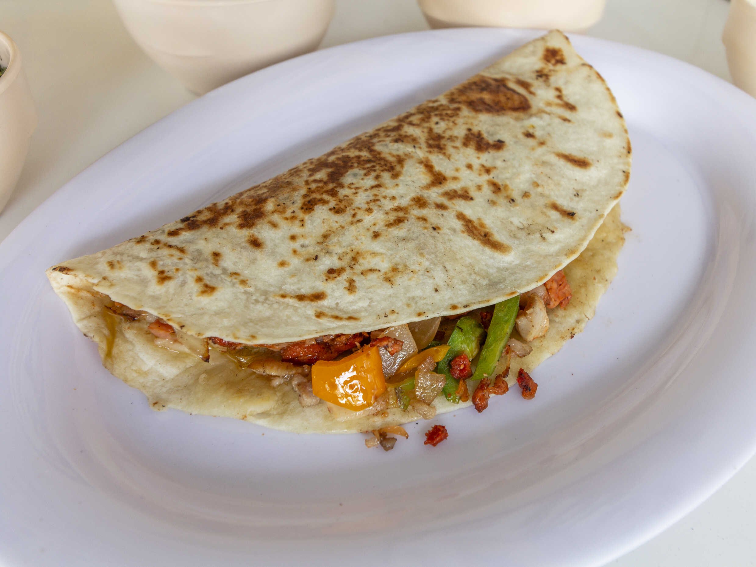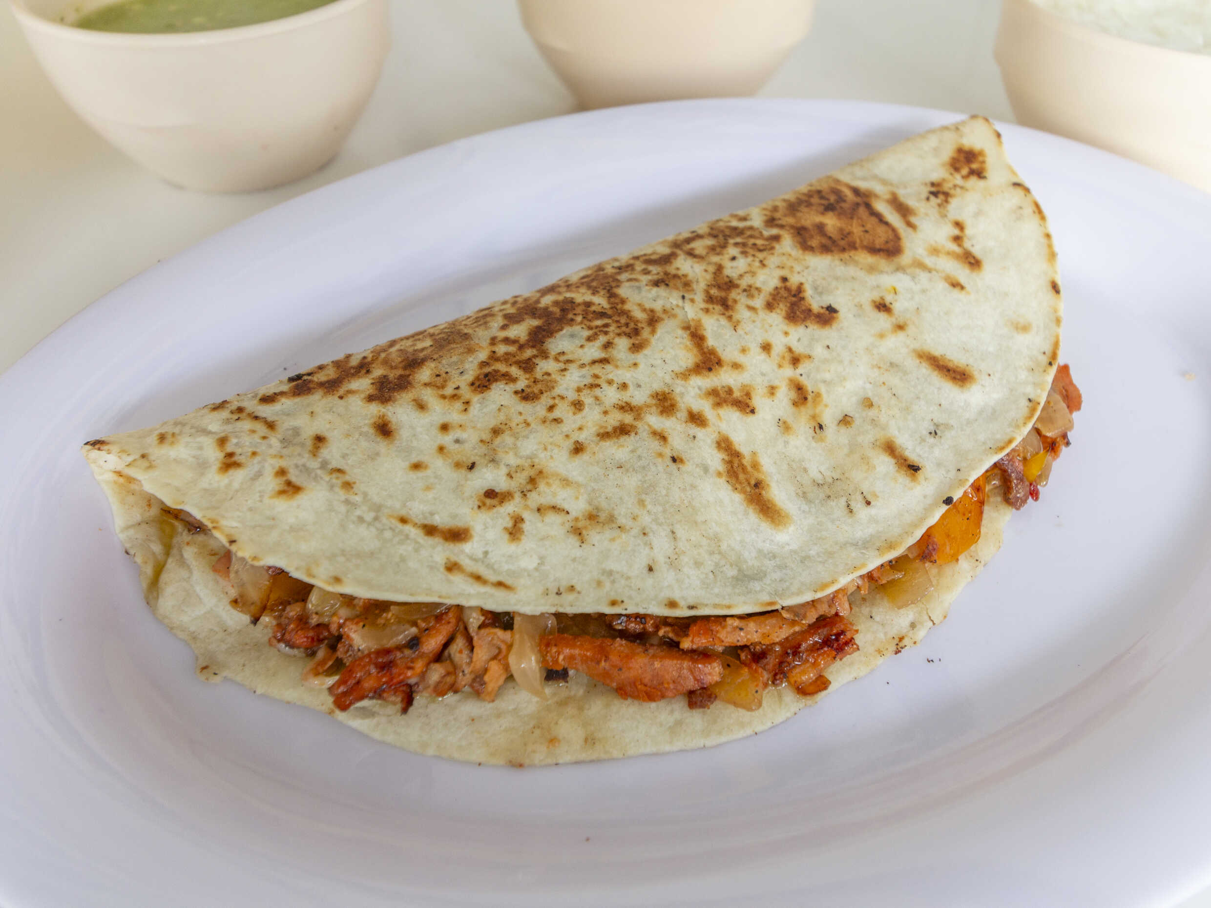 Quesadilla de pastor. 1 Sola tortilla de harina dobladita.