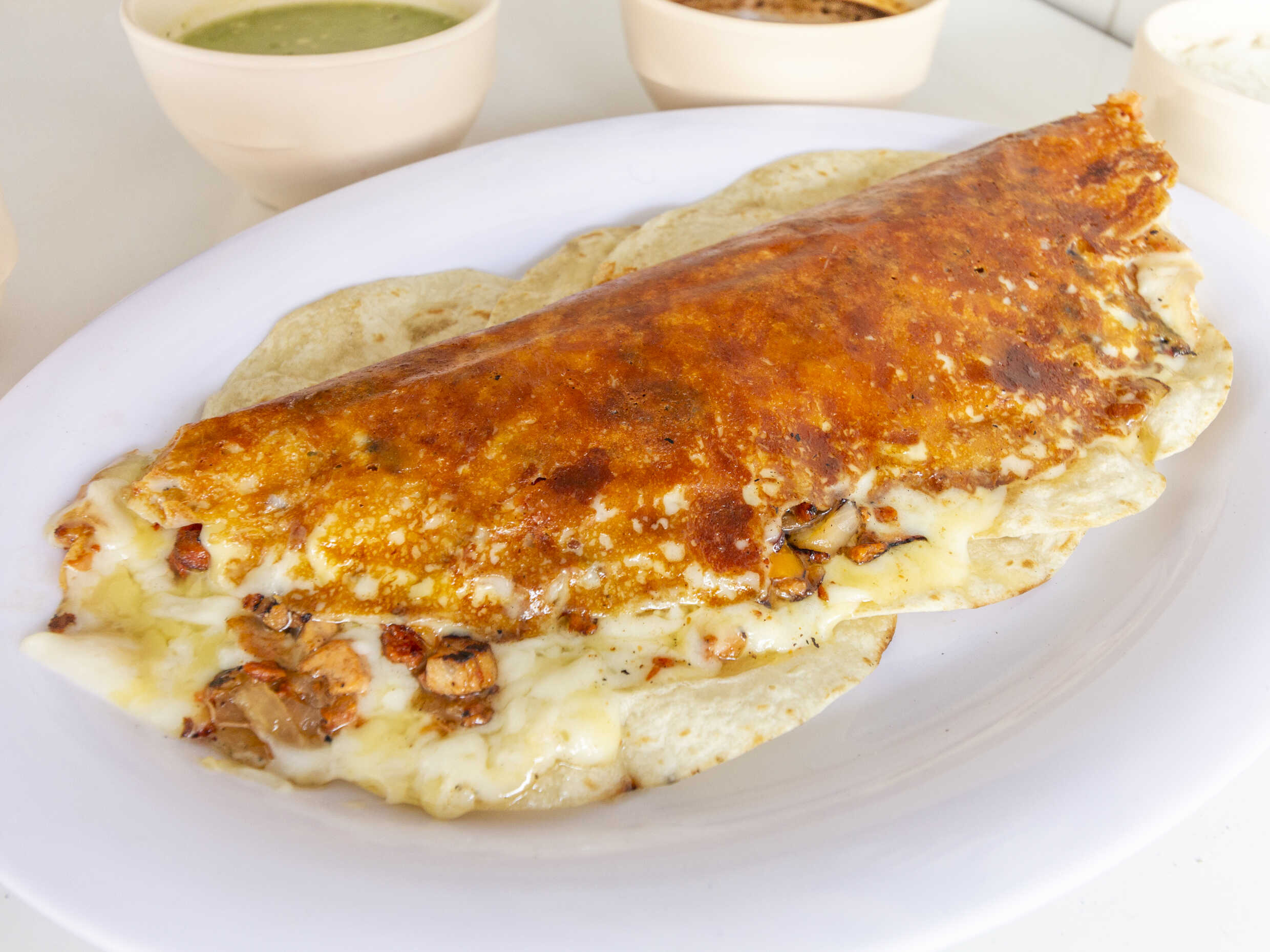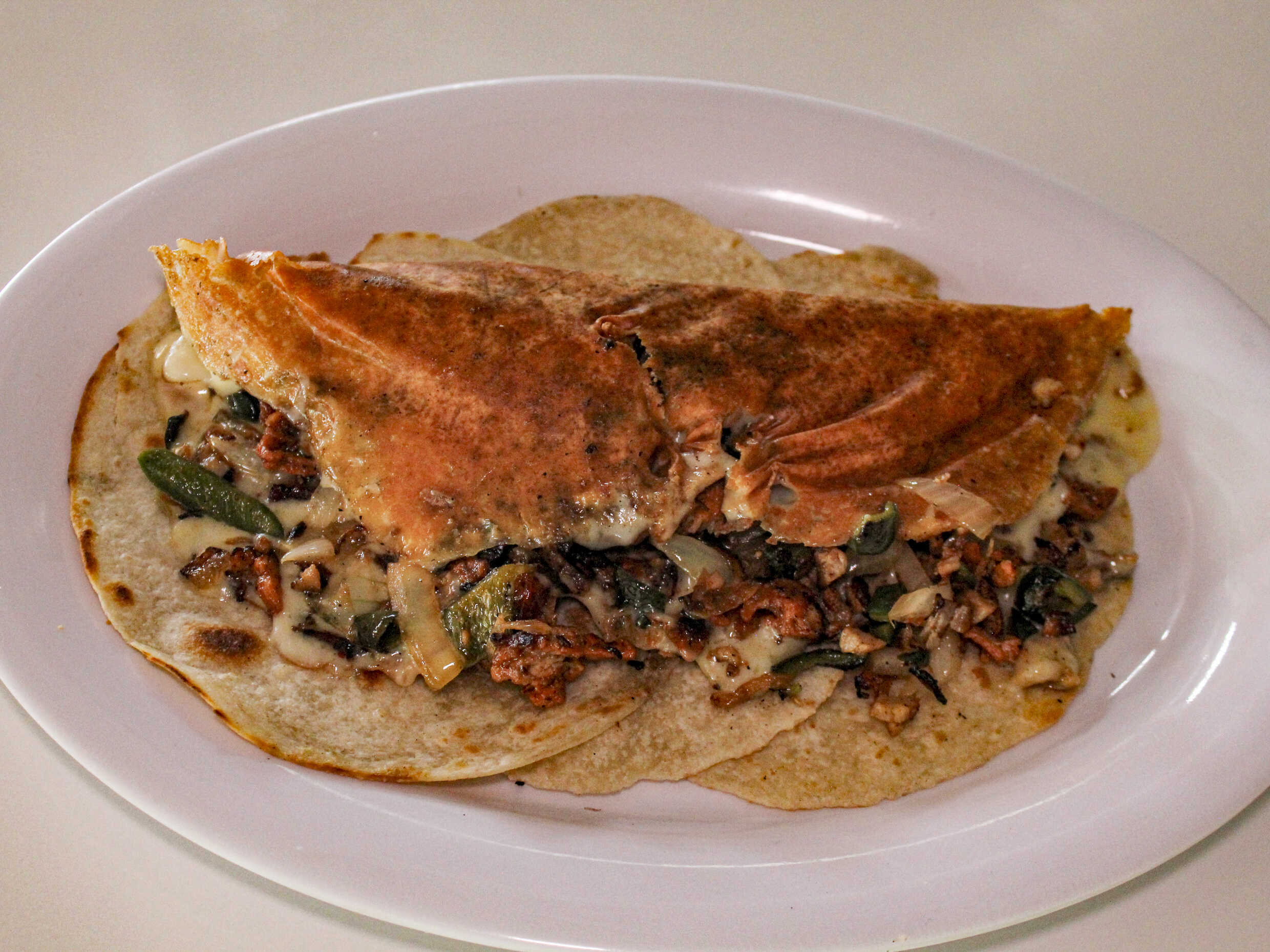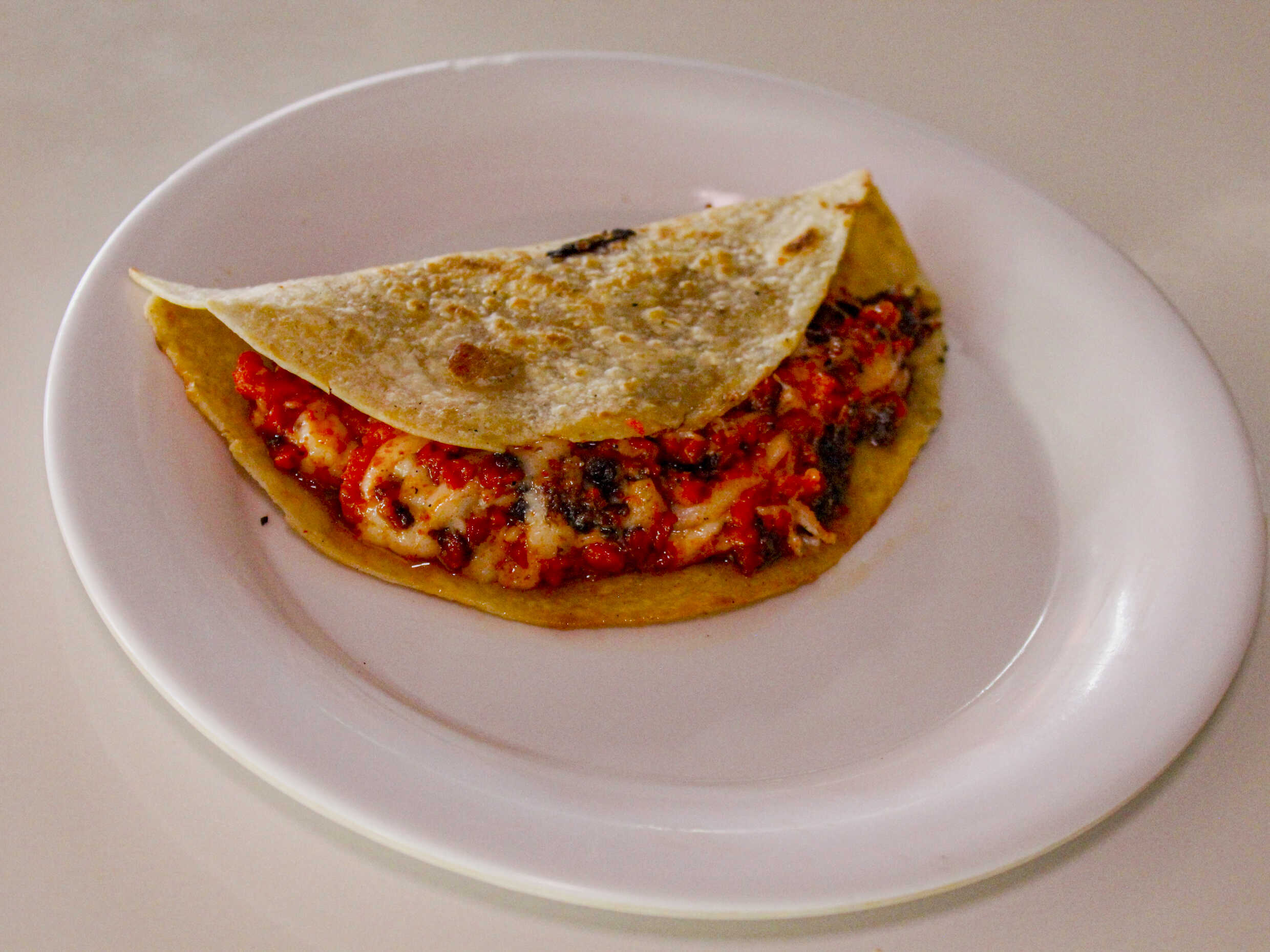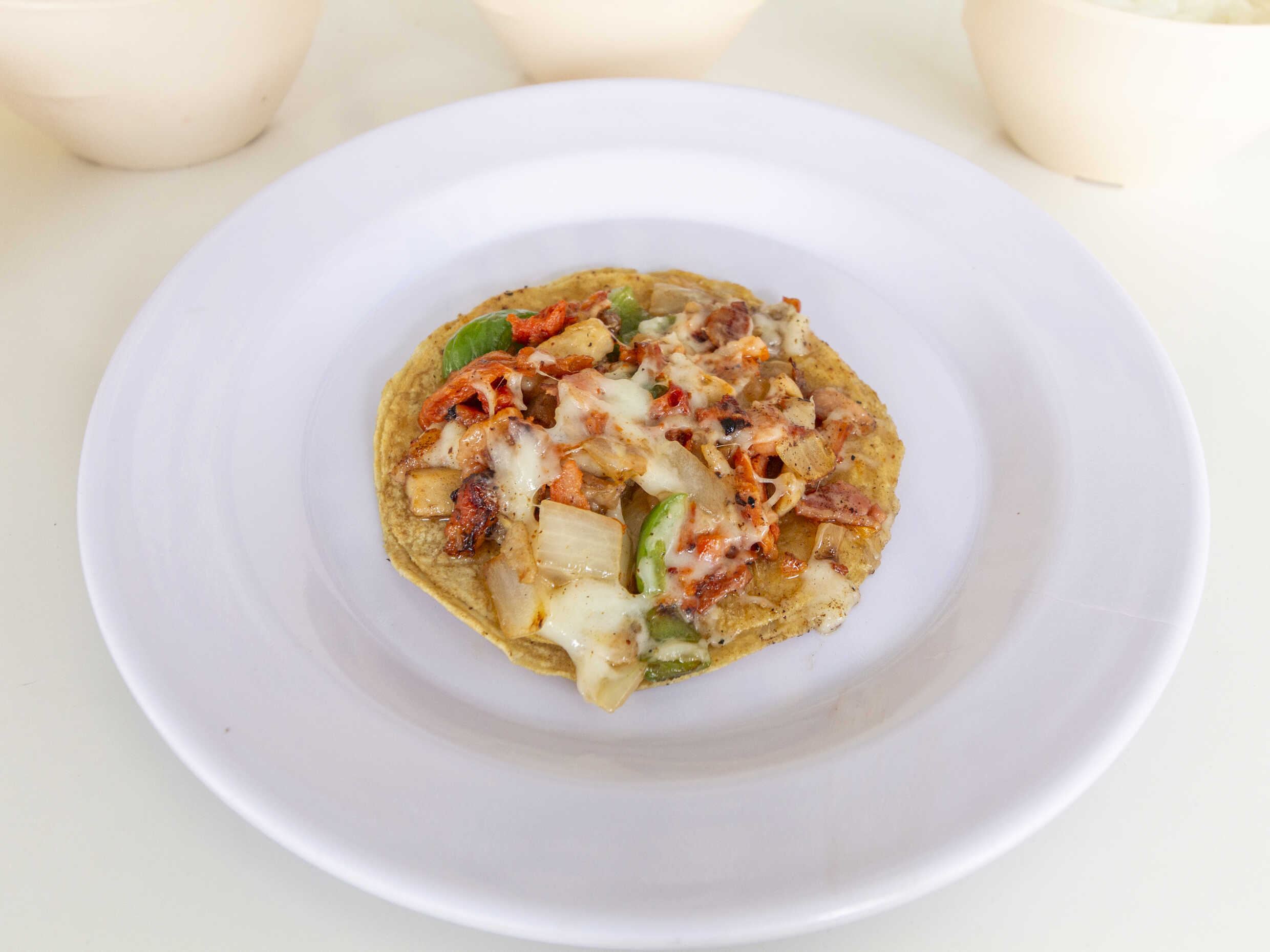 Quesadilla de pastor. 1 Sola tortilla de harina dobladita.