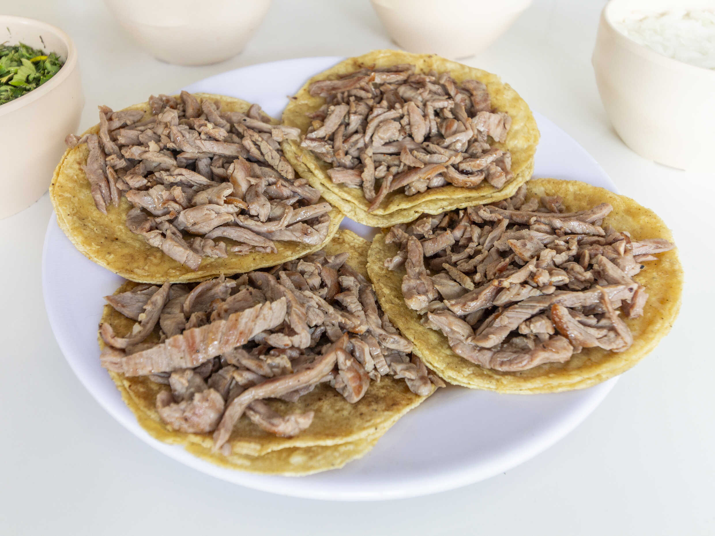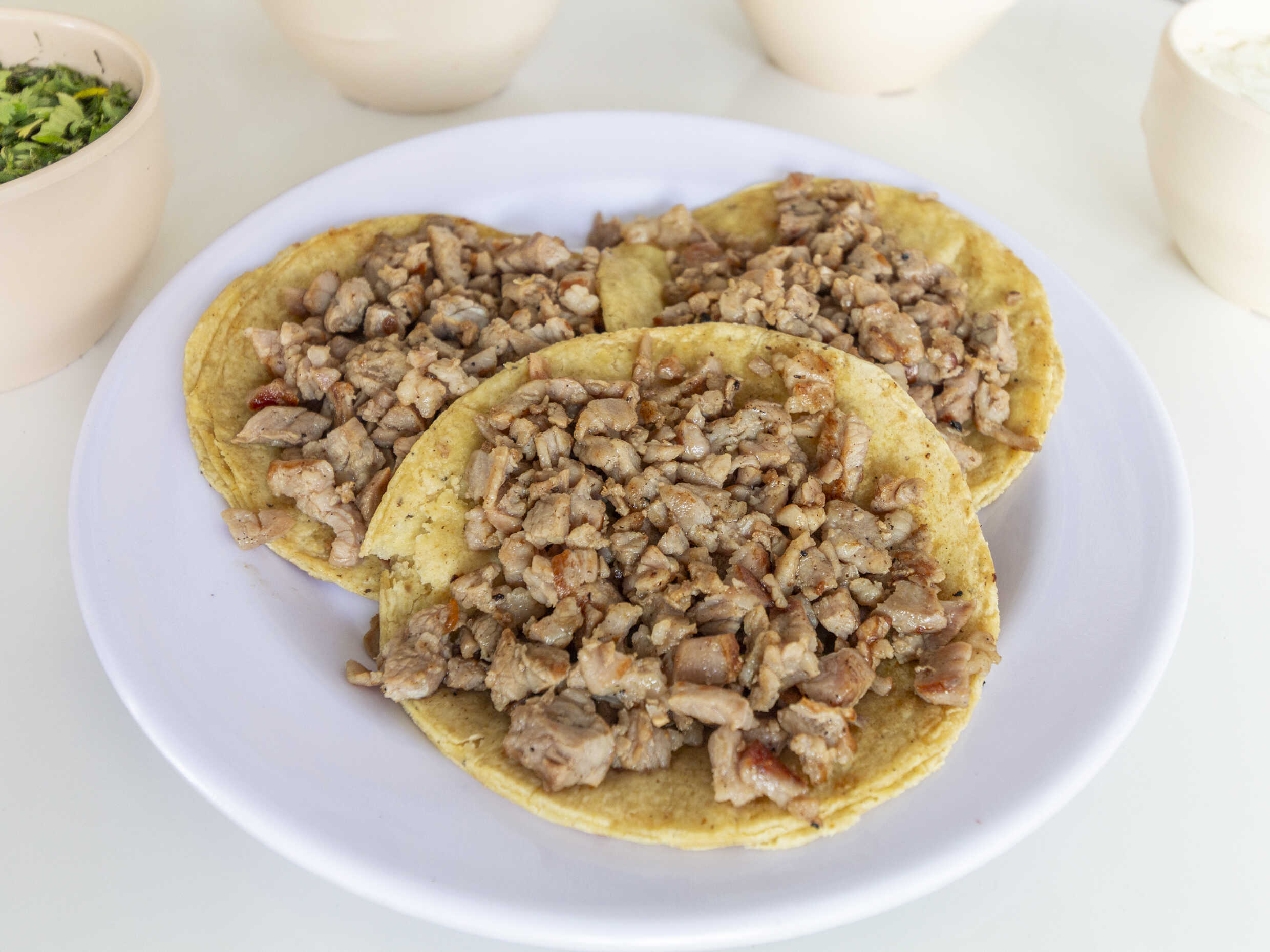 incluye doble tortillas de maiz con porcion de bistec cebolla cilantro salsa limon porcion personal
