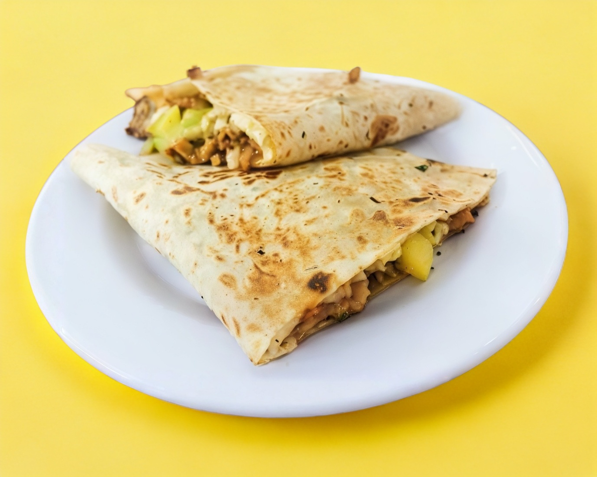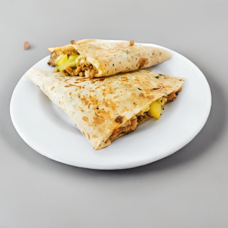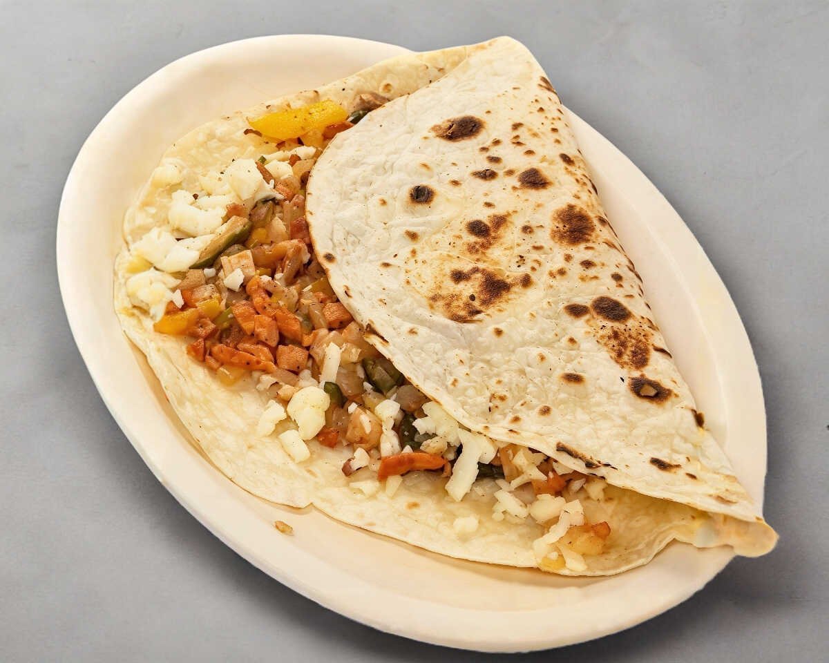 Doble tortilla de harina, queso y carne.