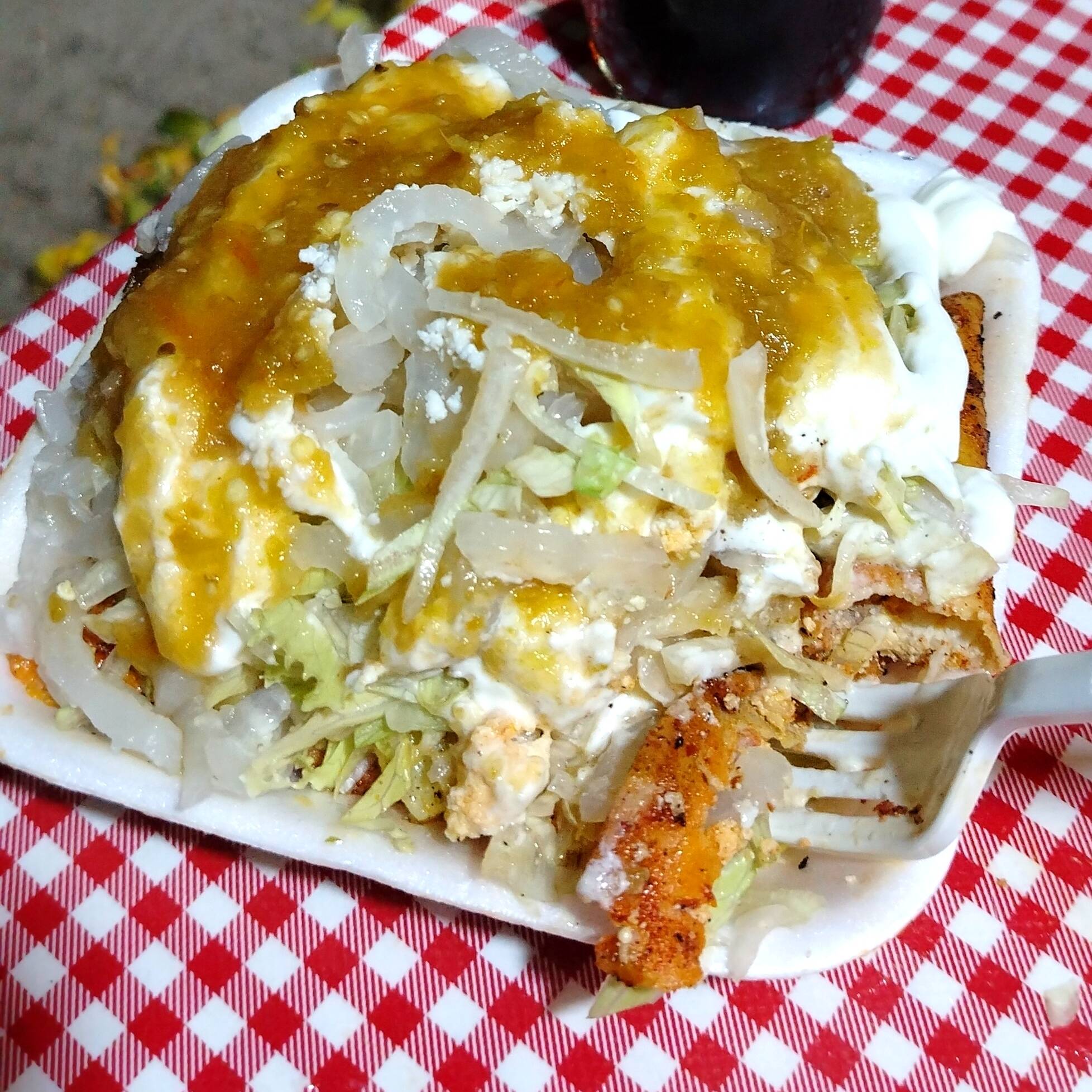 con guisados (con papa, rajas, frijol, queso, chorizo, chicharrón, bisteck, pastor).