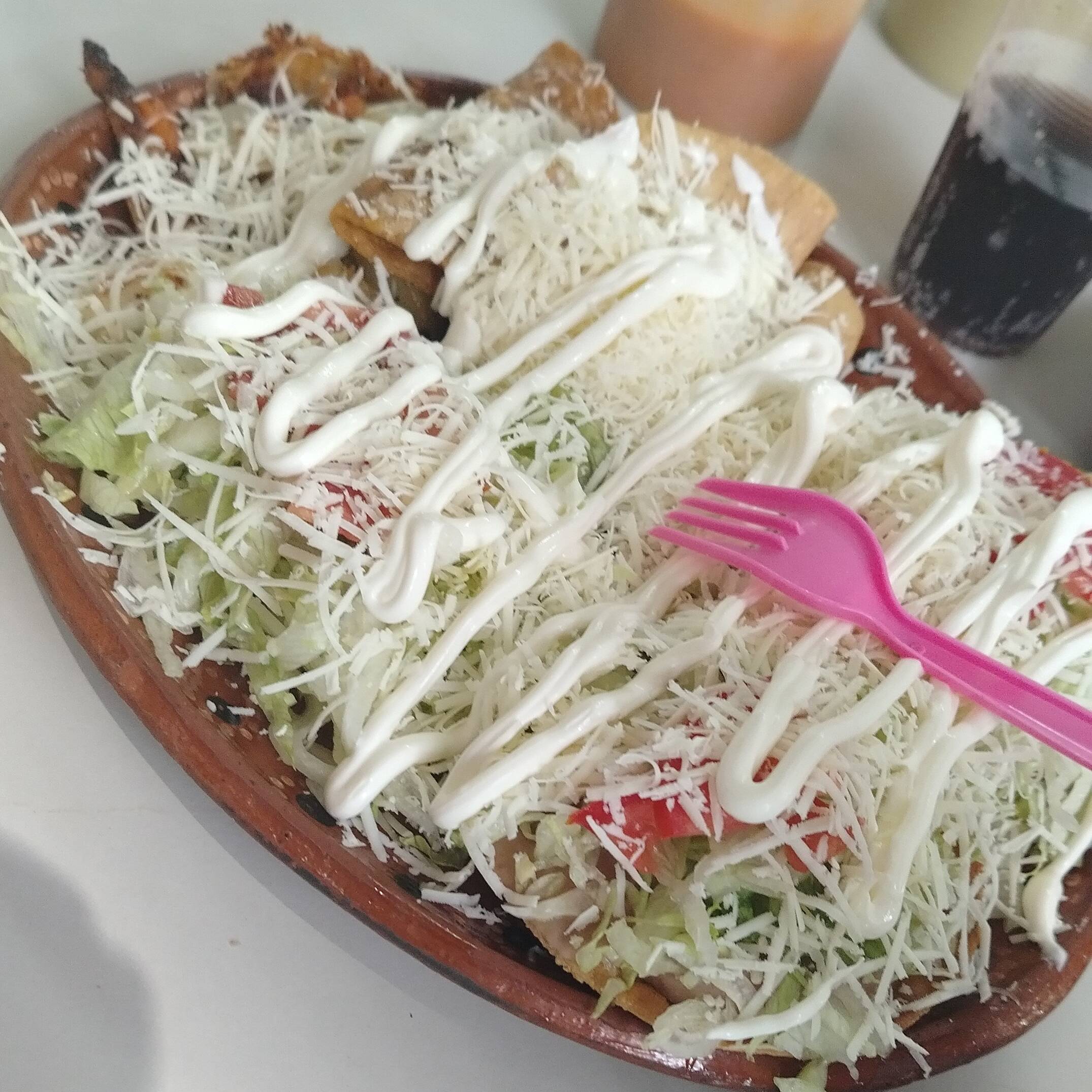 6 piezas rellenas de papa, raja, frijol, queso, chorizo.
