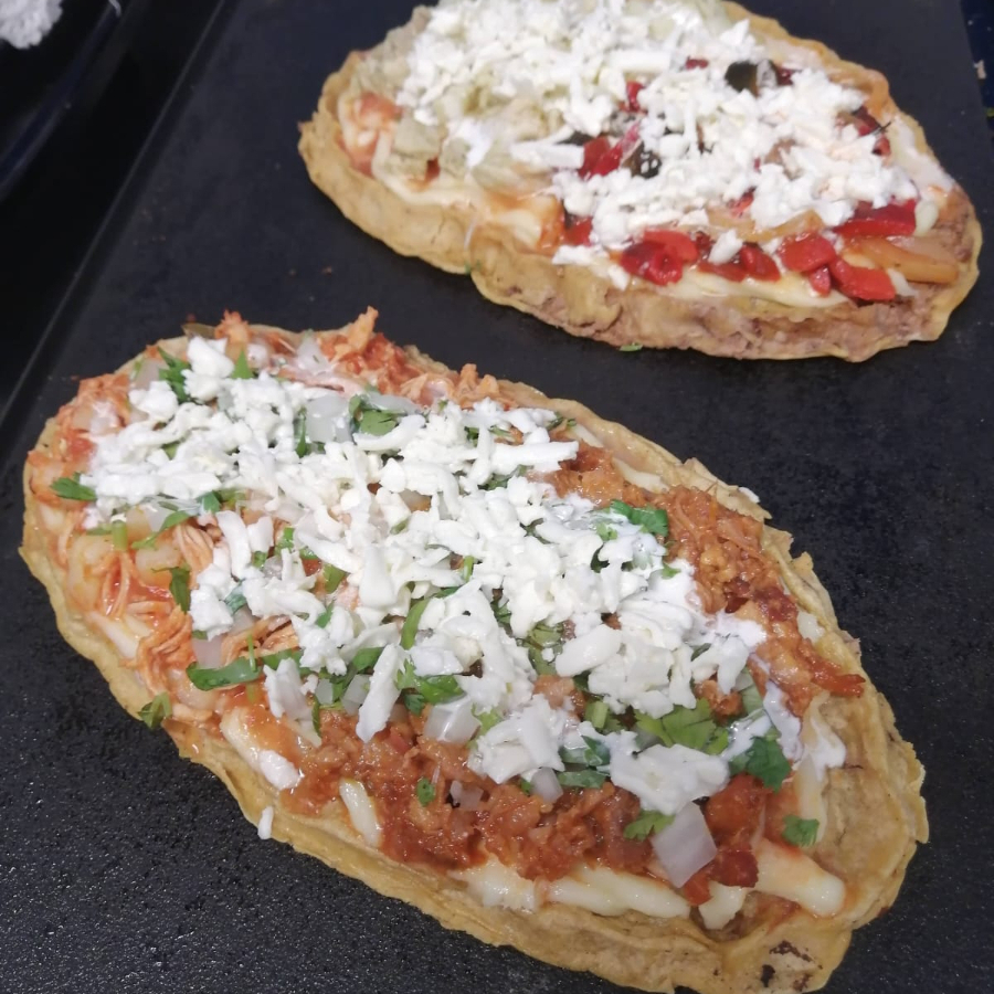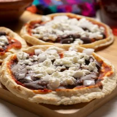 Sopes preparados con frijoles refritos, bañados con crema y queso panela. Incluyen: Salsa y verdura.