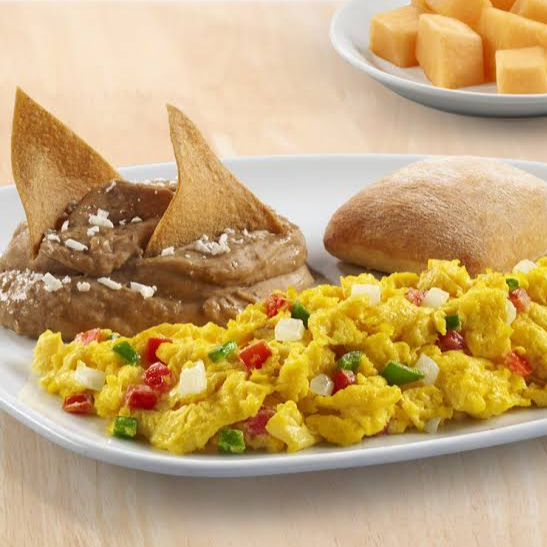Huevos cocinados de diversos estilos, acompañados de frijoles refritos con queso panela. Incluyen: Bolillo y salsa.