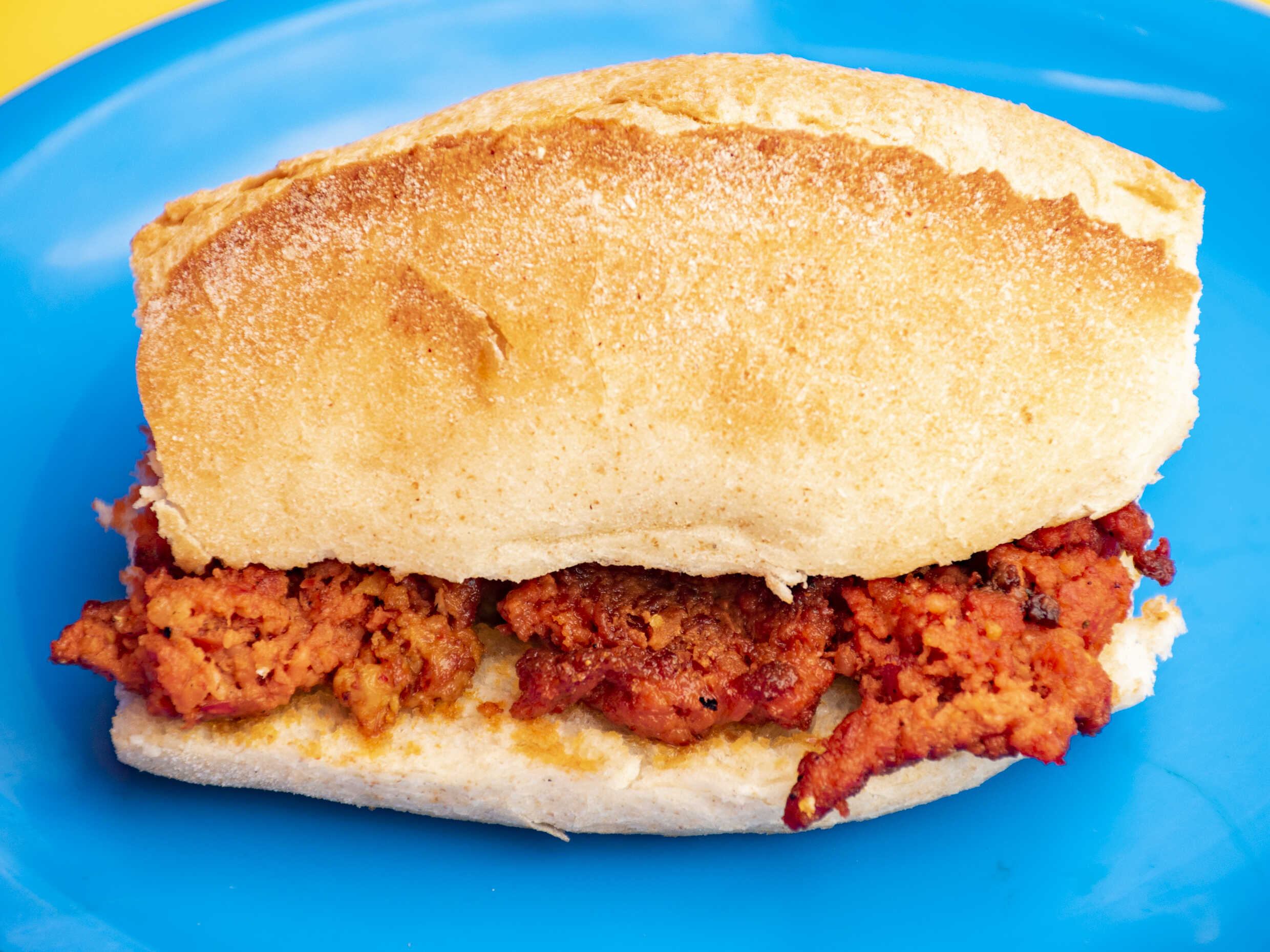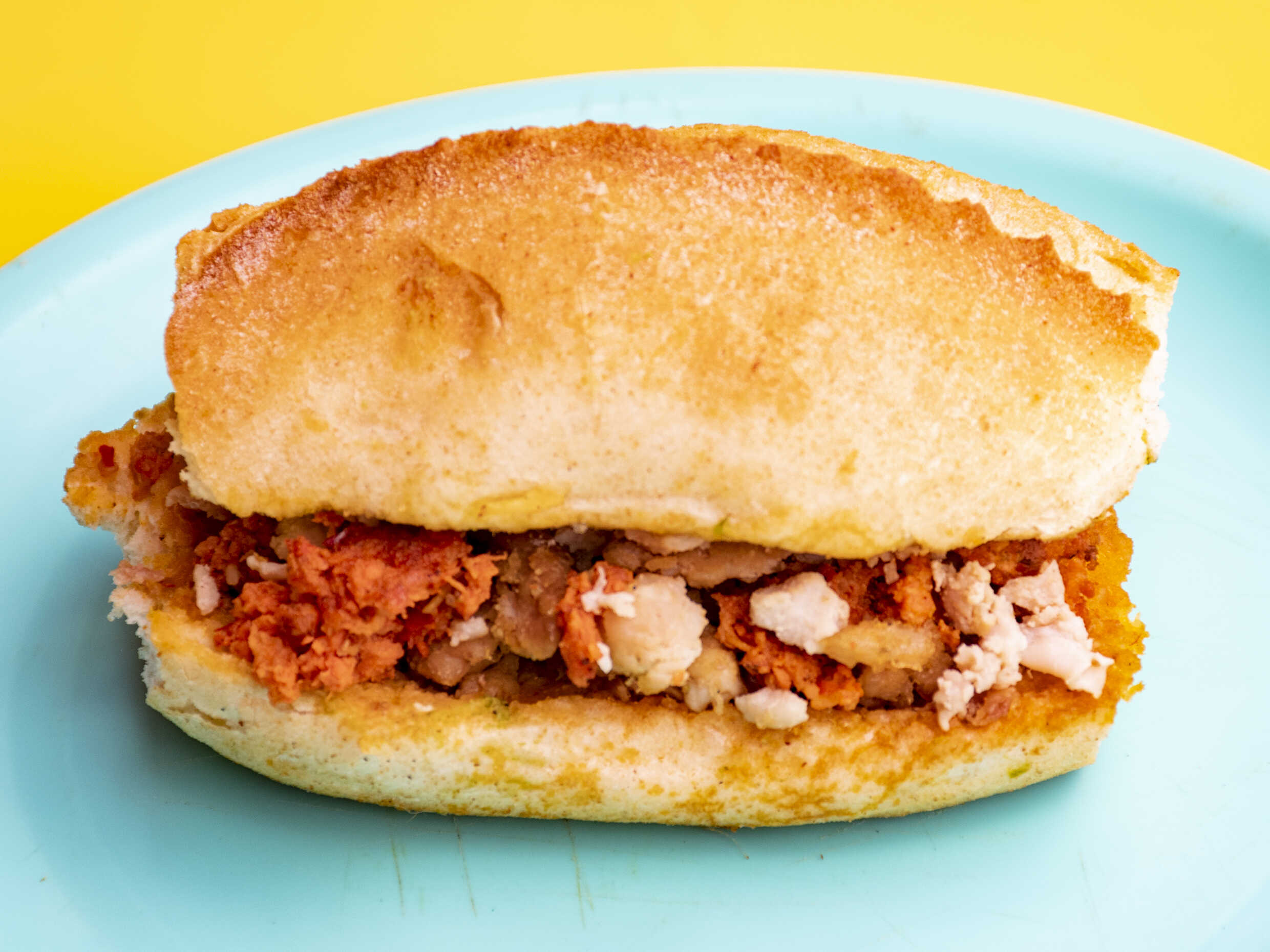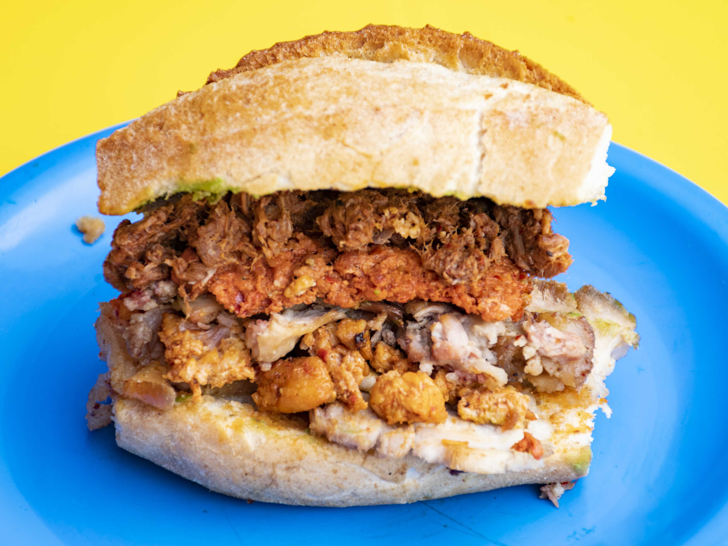 Bolillo 14 CM con tripa, chorizo rojo, cabeza de puerco, pastor y carnitas mix