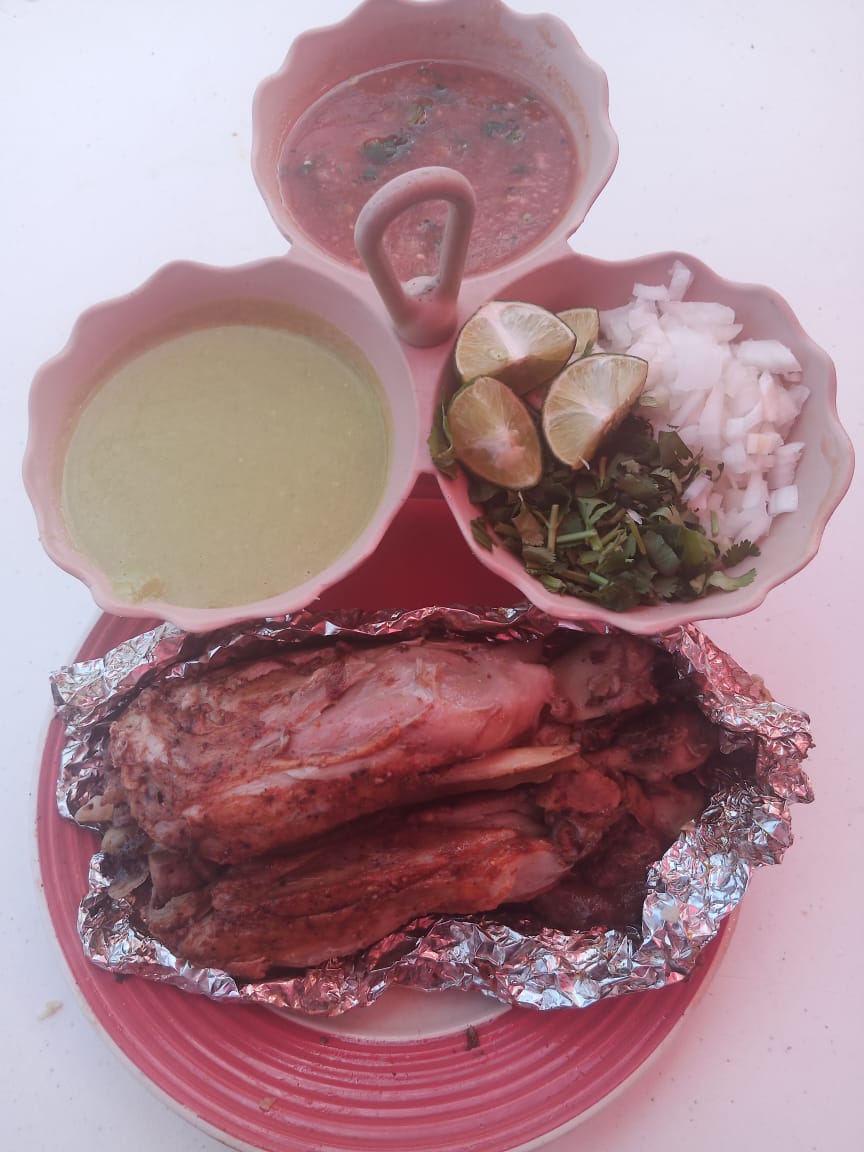 1 Kg. de carne a elegir, incluye tortillas, chile toreado, cebolla asada, papitas y .