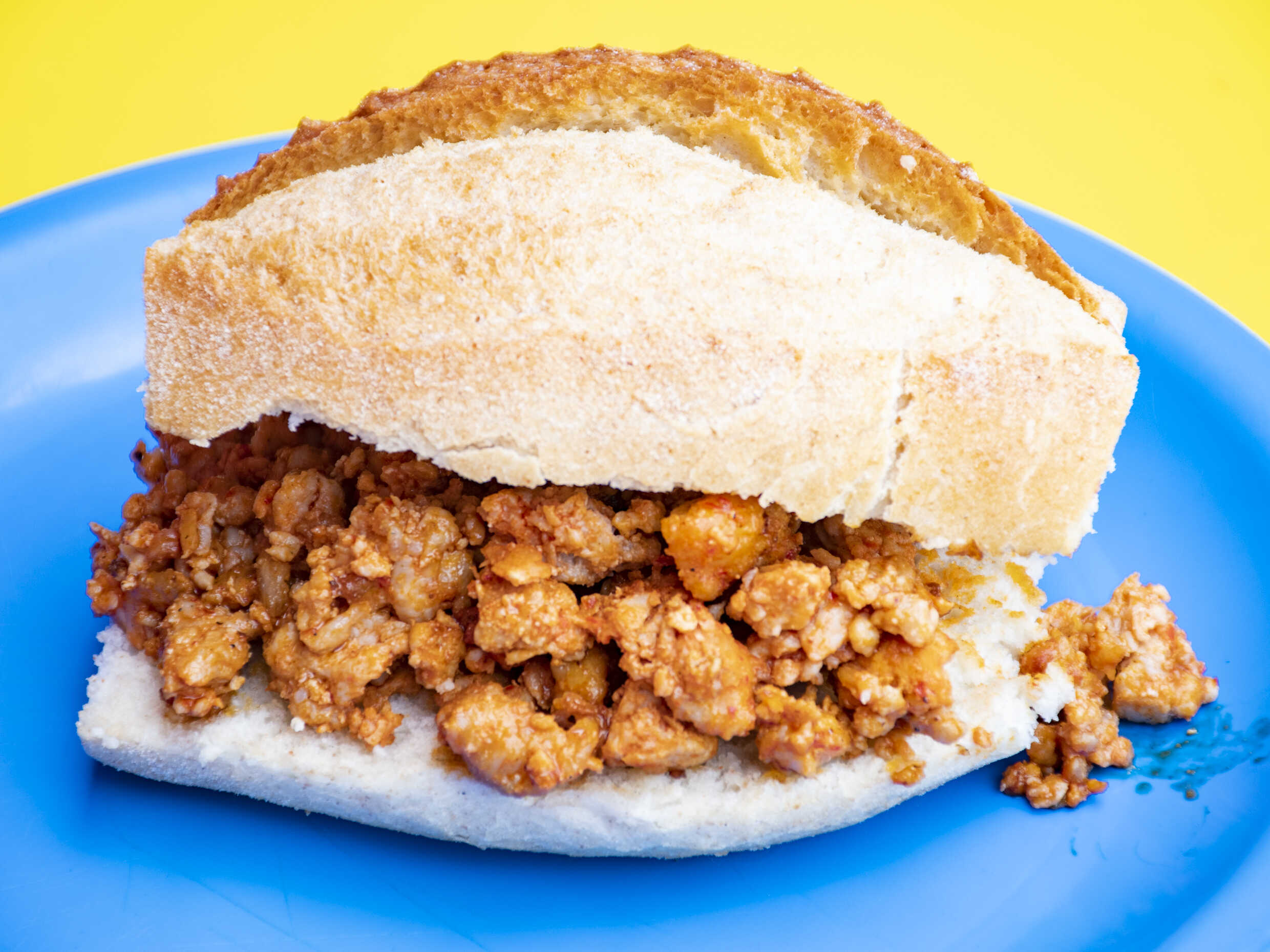 Bolillo 14 cm. con carne al pastor, incluye limón y verdura.