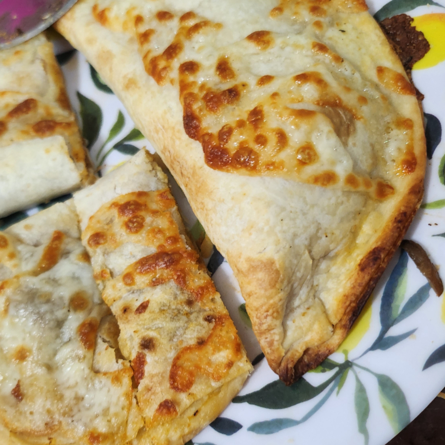 Chorizo ,queso gratinado,salsa de pizza , tortilla de harina doradita.(no incluye chimichurri).