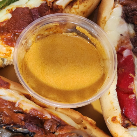 Salchichon,salsa para pizza,peperoni,queso blanco tostadito y gratinado en horno bañado en queso amarillo derretido.