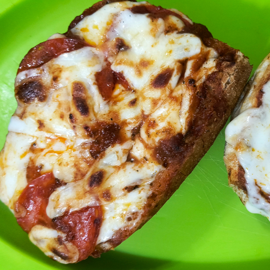 Pepperoni,salsa de pizza, queso gratinado al horno en base de bolillo grande (tres mitades)