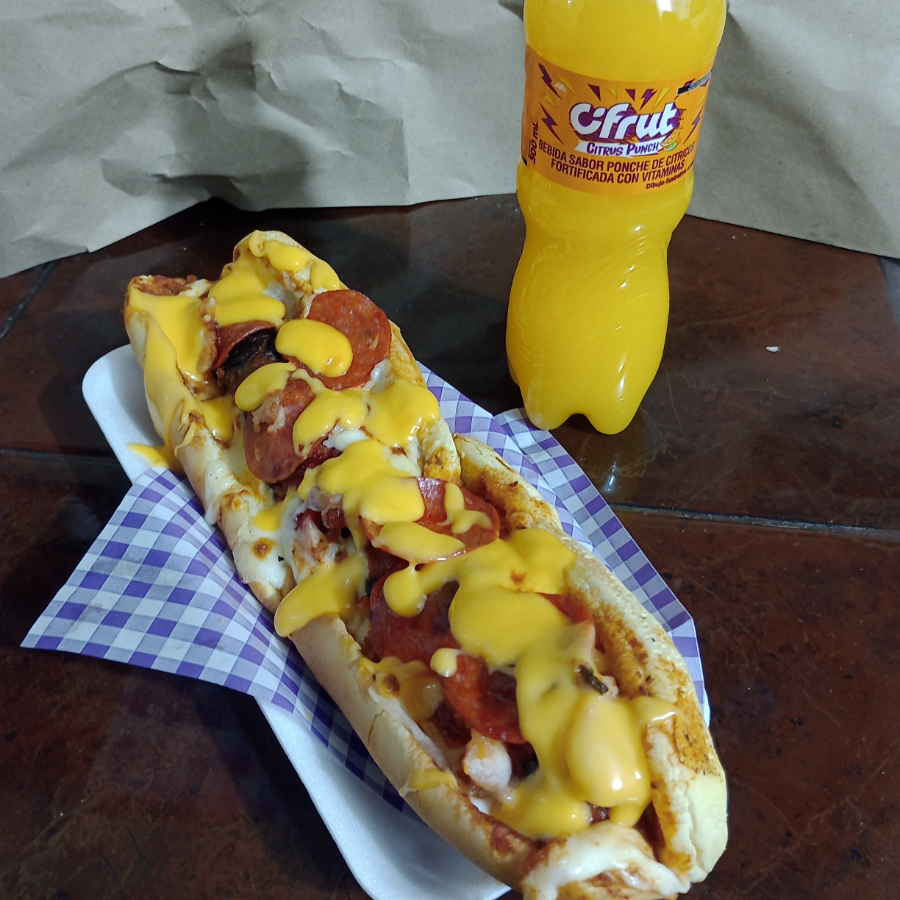 1 MEGA PIZZA DOG y 1 BEBIDA JUGO DE CITRICOS