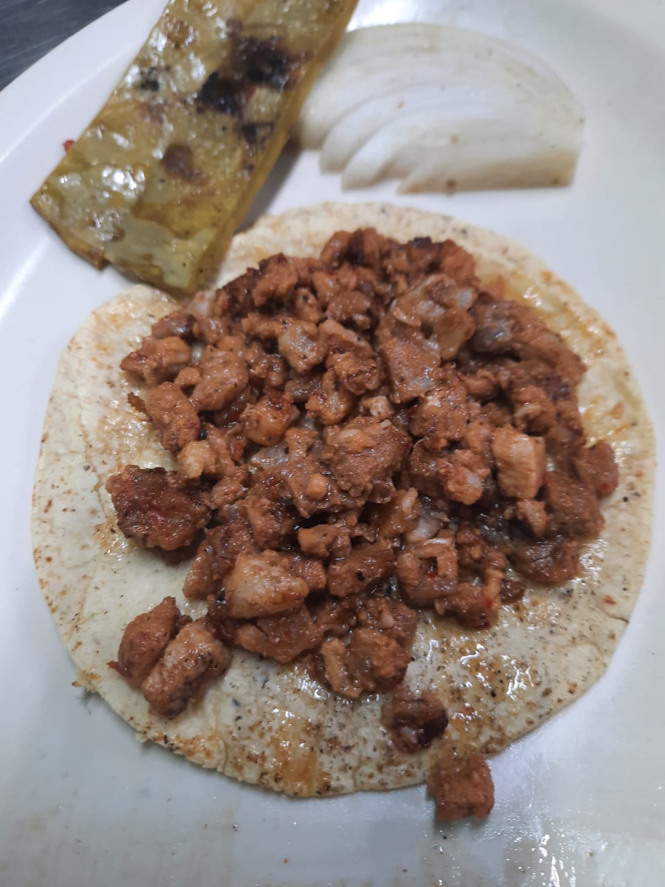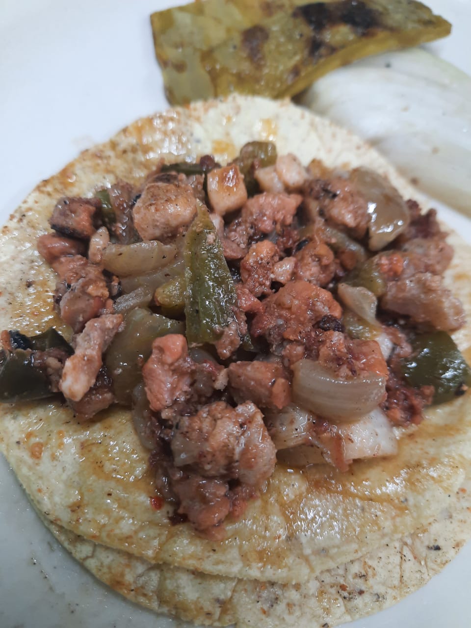 Una tortilla de harina con queso y carne a elegir. Incluye verdura y salsa.