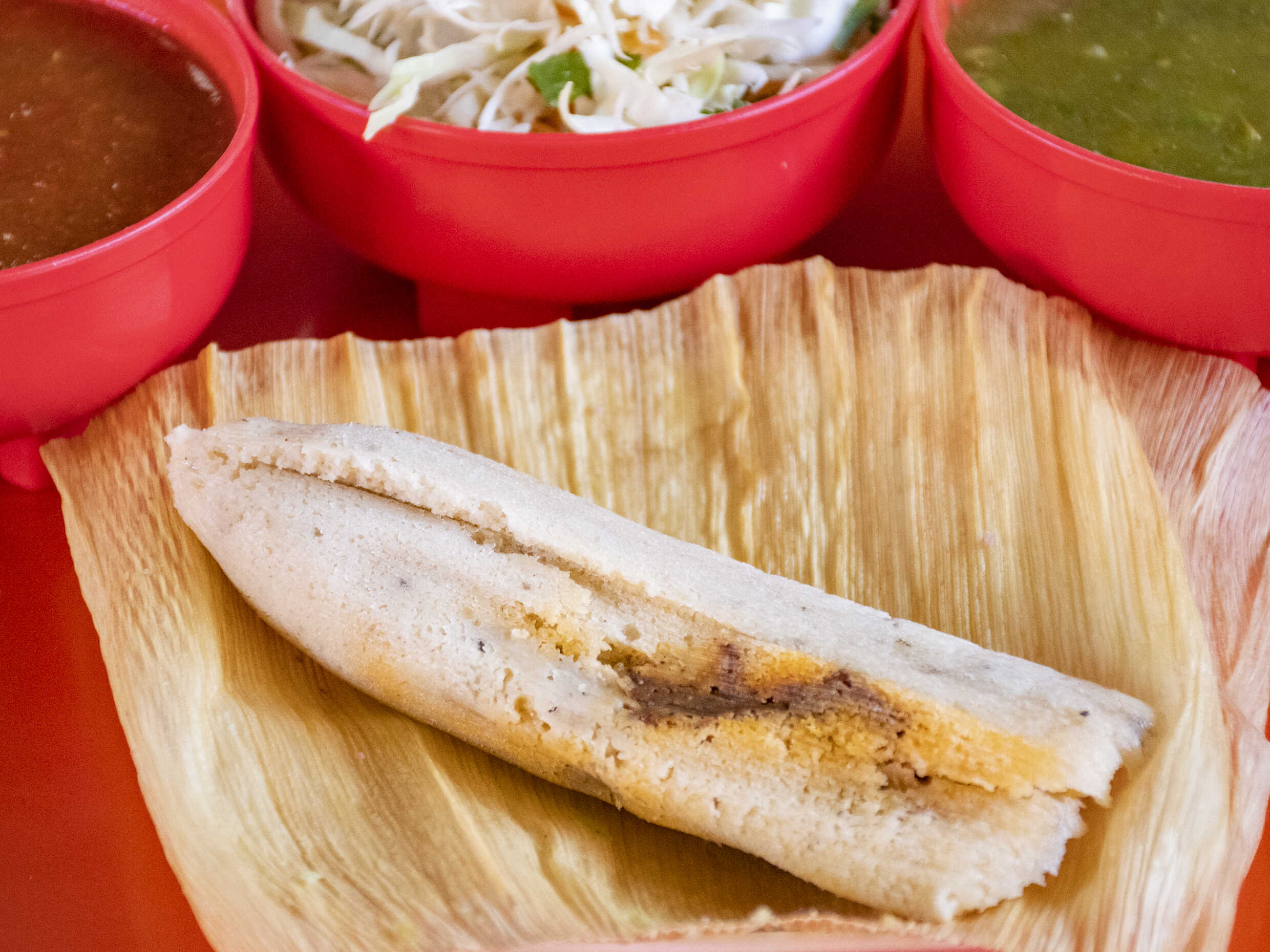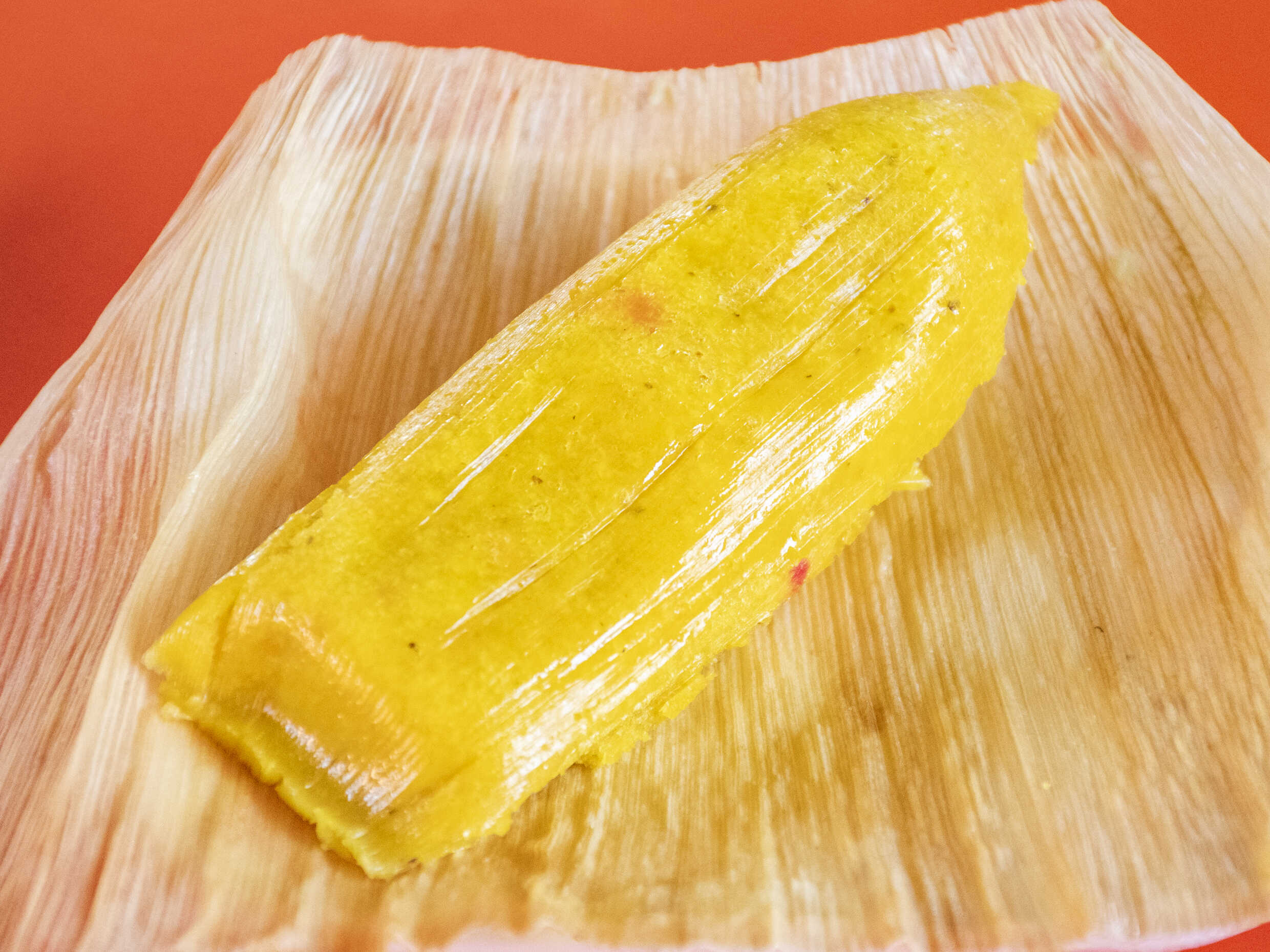 Masa de harina de maíz endulzada, esencia de piña y trozos de piña