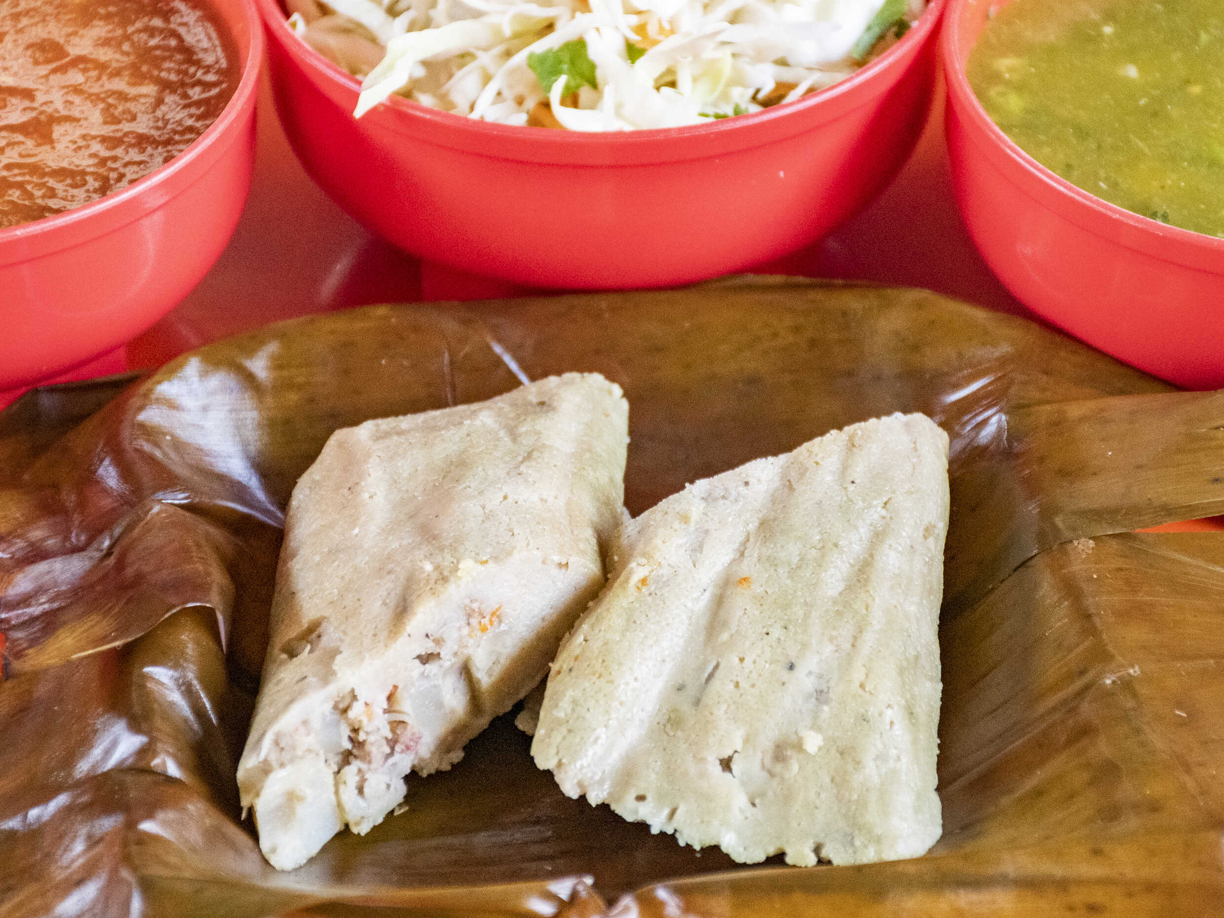 Masa de harina de maíz endulzada , con trozos de nuez y esencia de Pistache