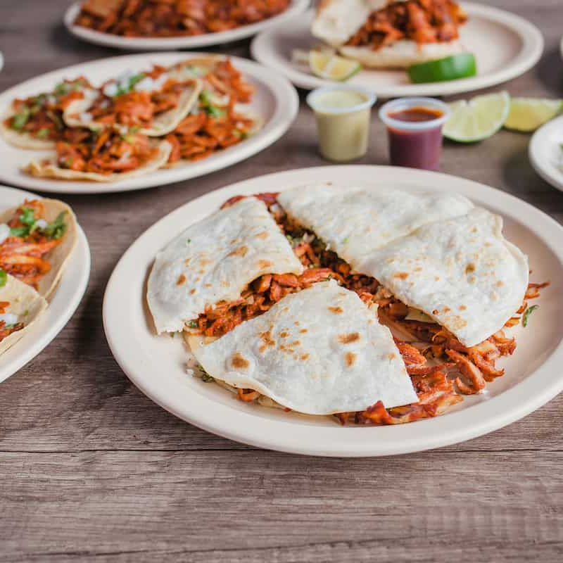 Doble tortilla de harina, carne al gusto con queso fundido.