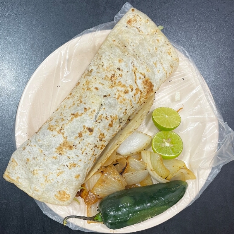 Trtila de harina gigante en forma de burrito con carne de tu elección
