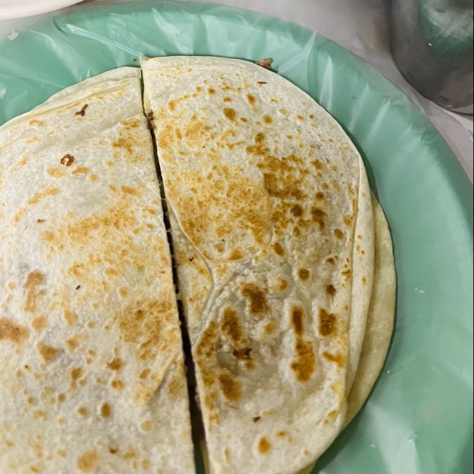Tortilla de harina grande rellena de queso fundido tipo Chihuahua o Oaxaca.
