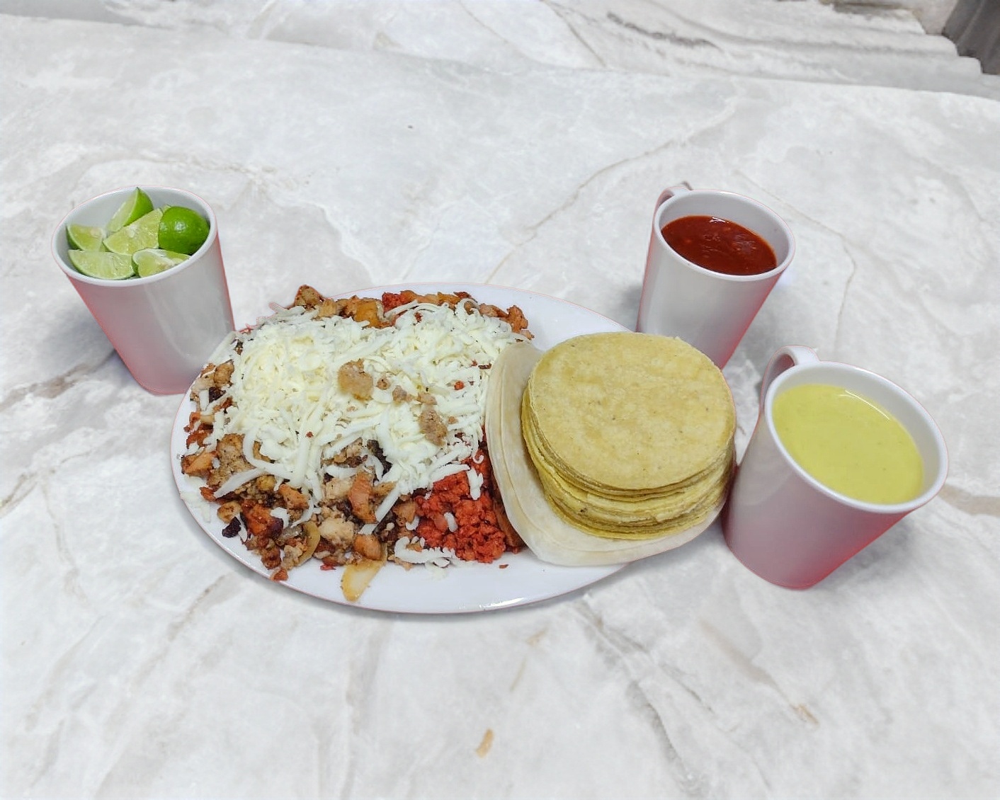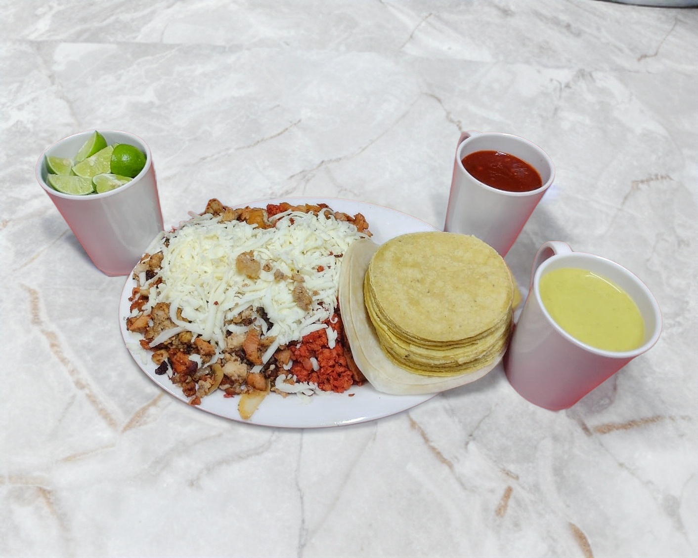 3 gringas de pastor salsas verduras y limones