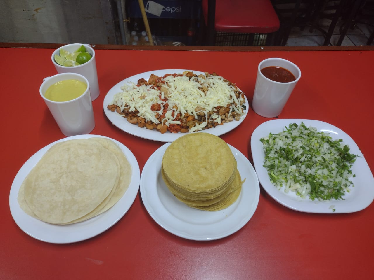 PROMOCIÓN 1 CHAROLITA ESPECIAL DE PASTOR (10 TORTILLAS DE MAÍZ 3 TORTILLAS DE HARINA.SALSAS Y LIMONES)