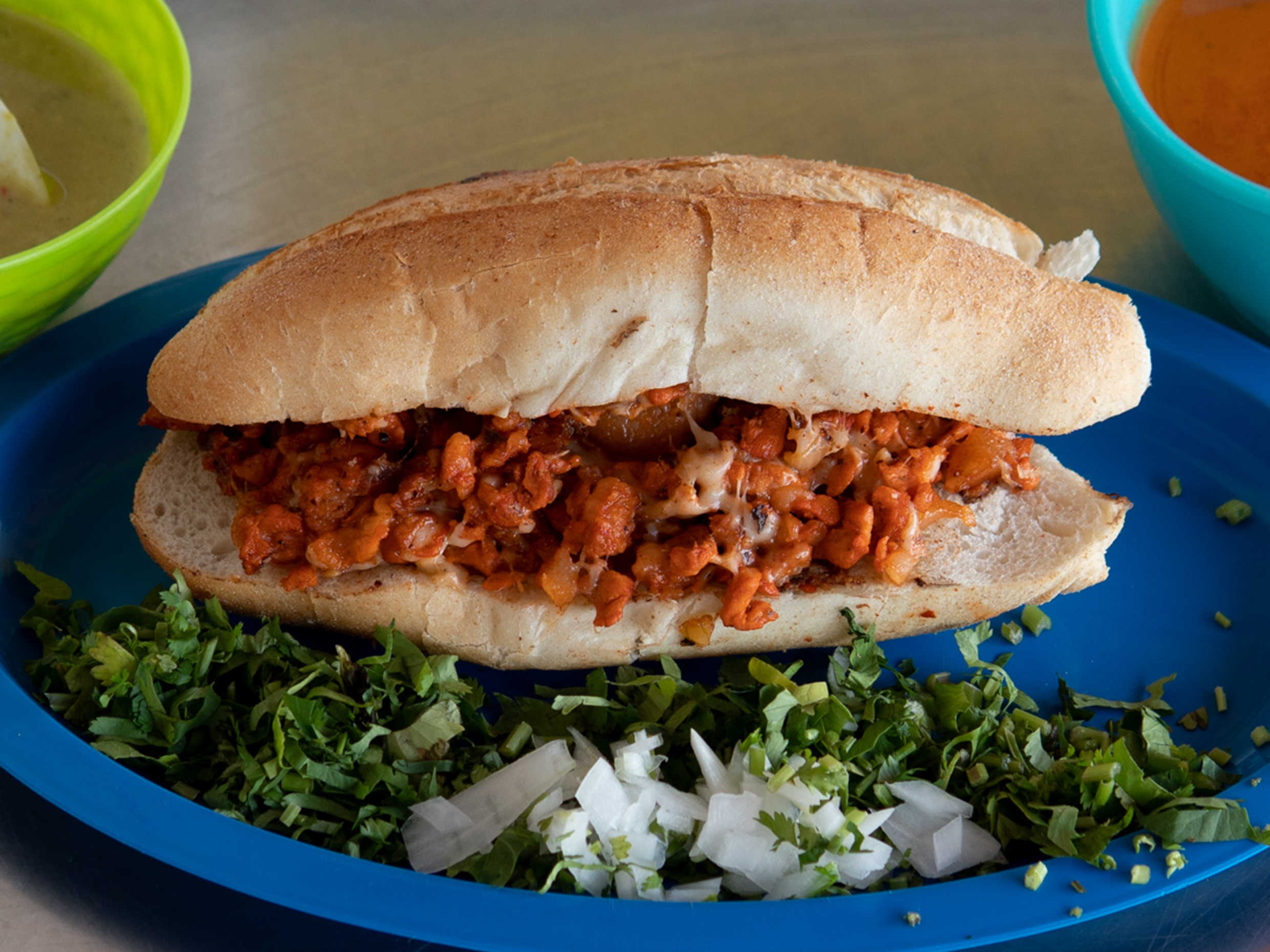 1 TORTA DE PASTOR CON QUESO Y SALSAS