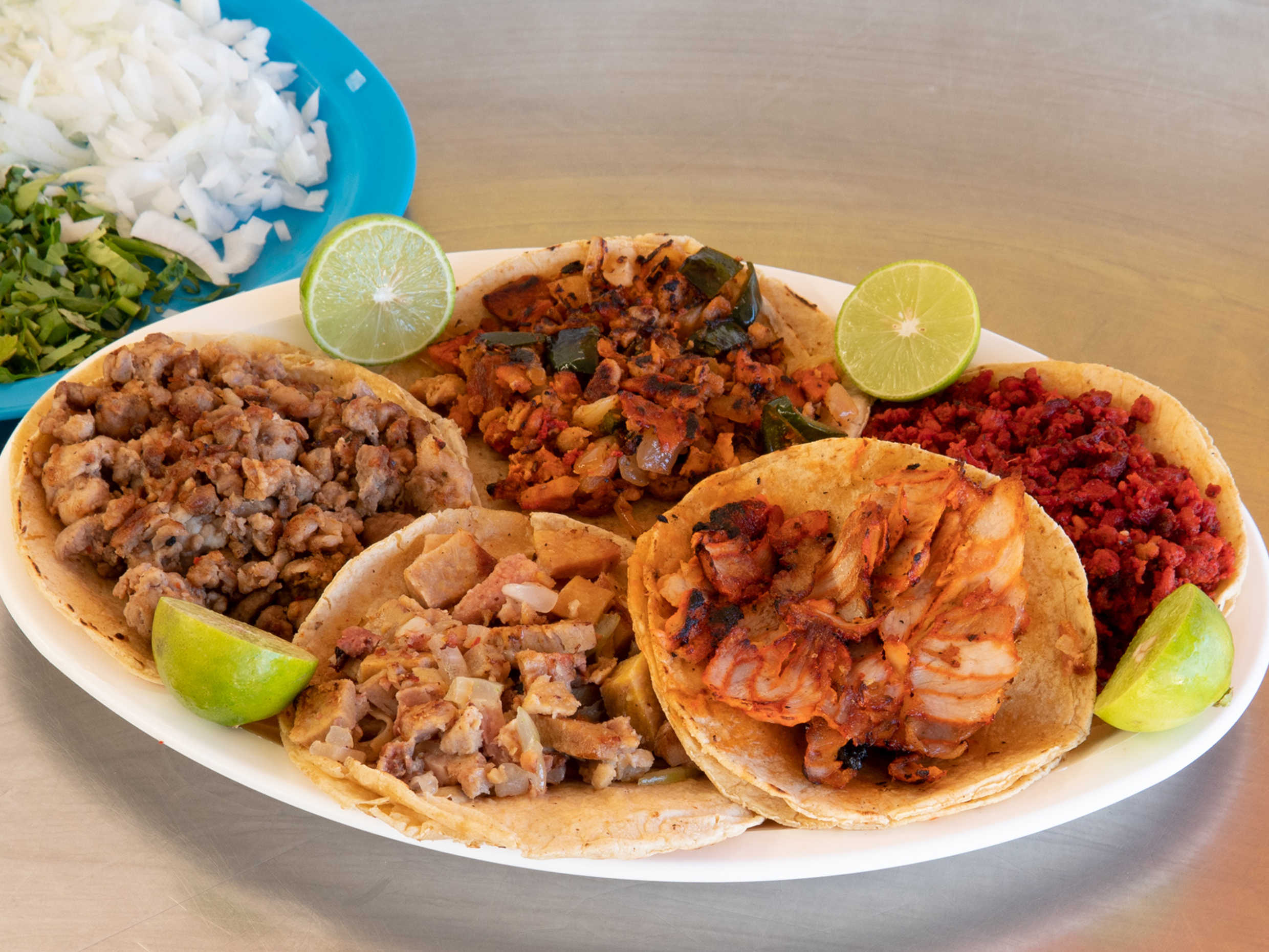 3 Tacos de Bistec con Pastor con Queso