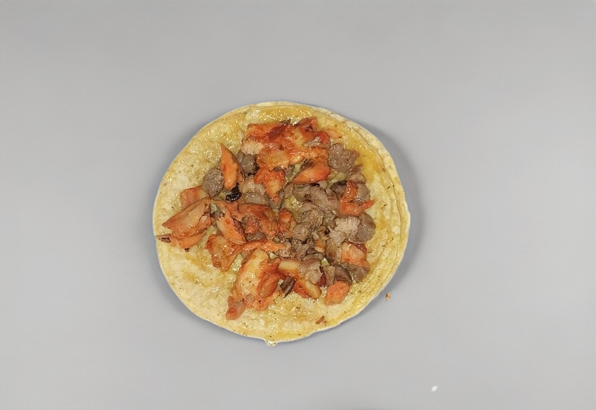 chorizo,bistec,piña, tocino y queso.4 tortillas de harina. porcion