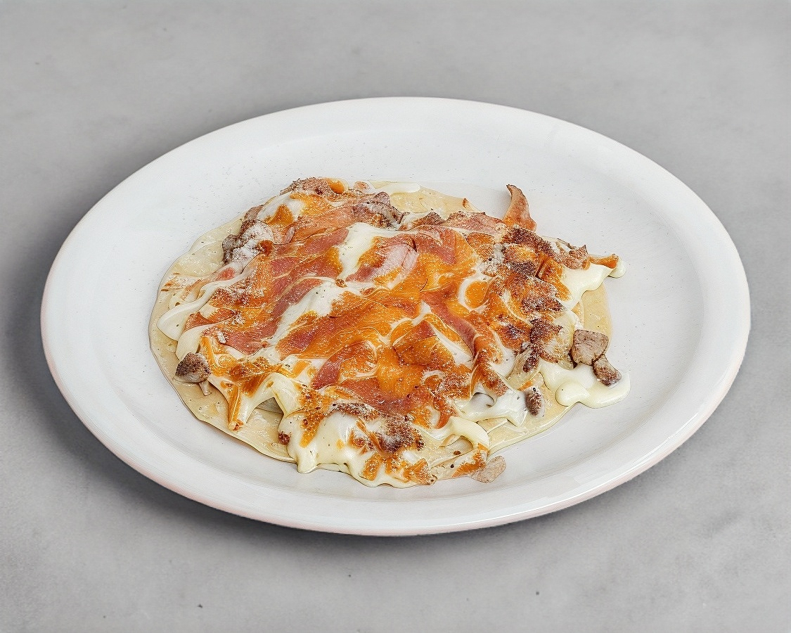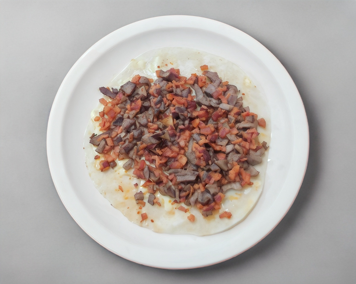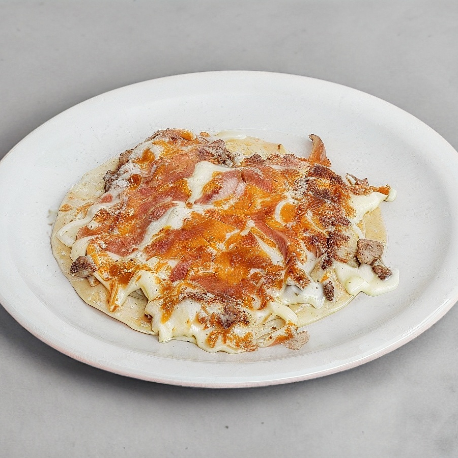 Chuleta, piña, tocino y queso.4 tortillas de harina. porcion