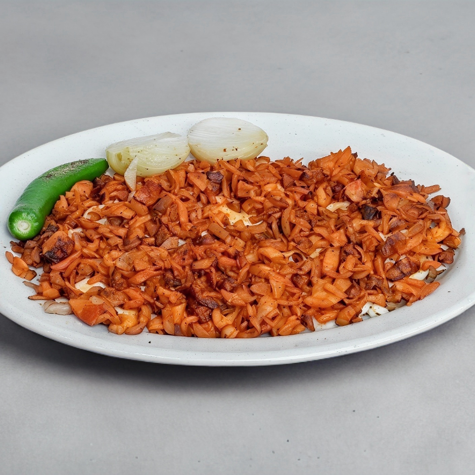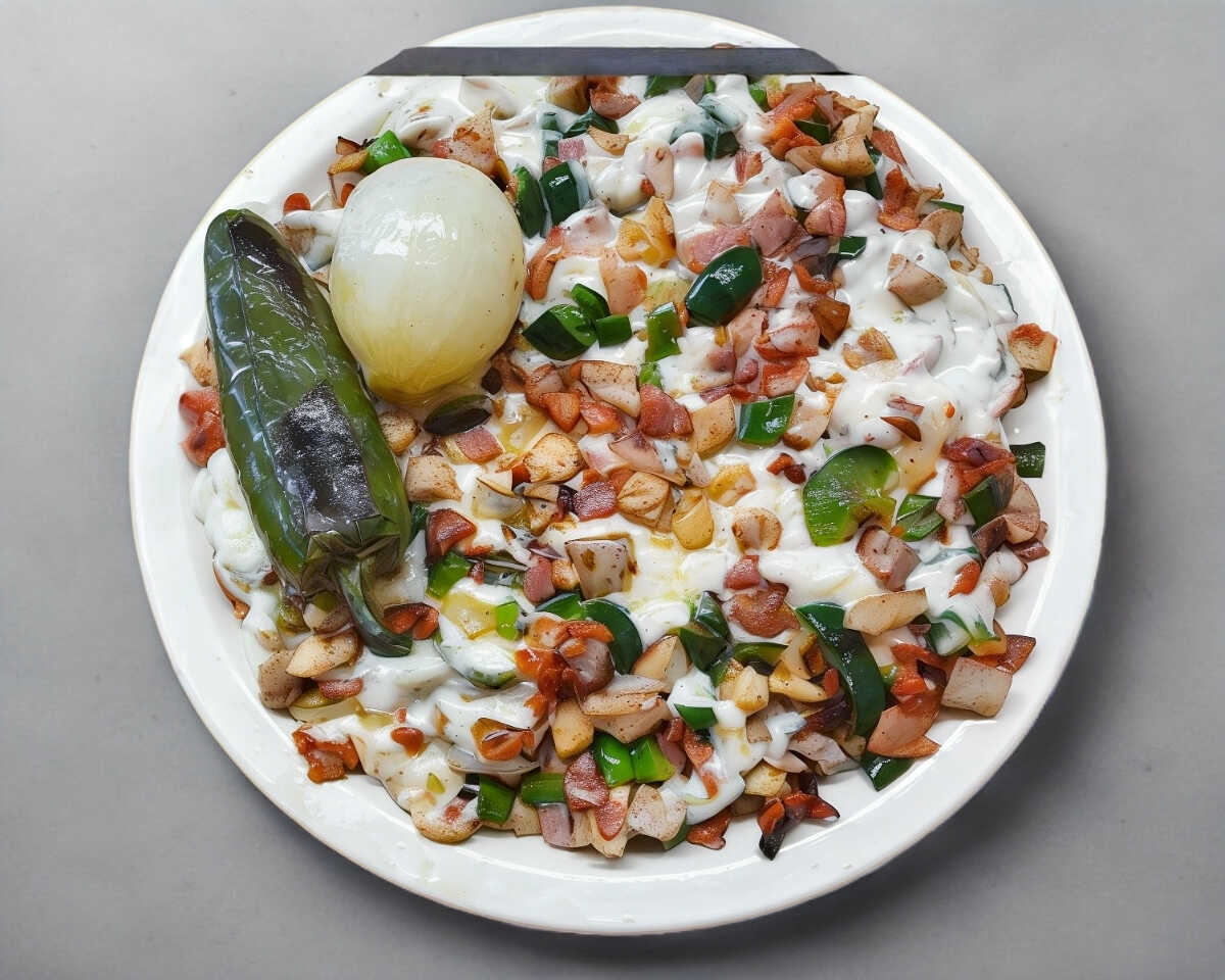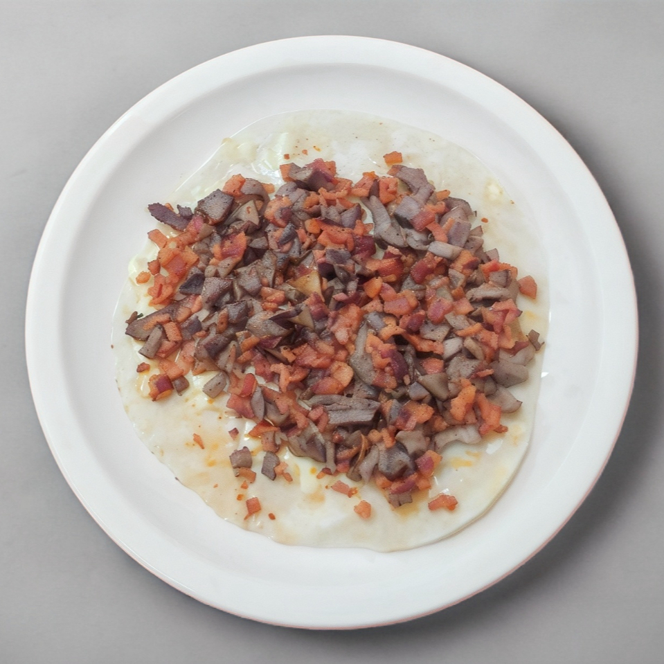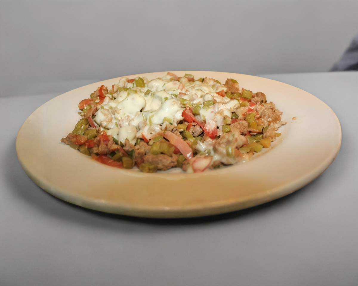 morron ,cebolla , tocino. queso , para 7/8 tacos .porcion