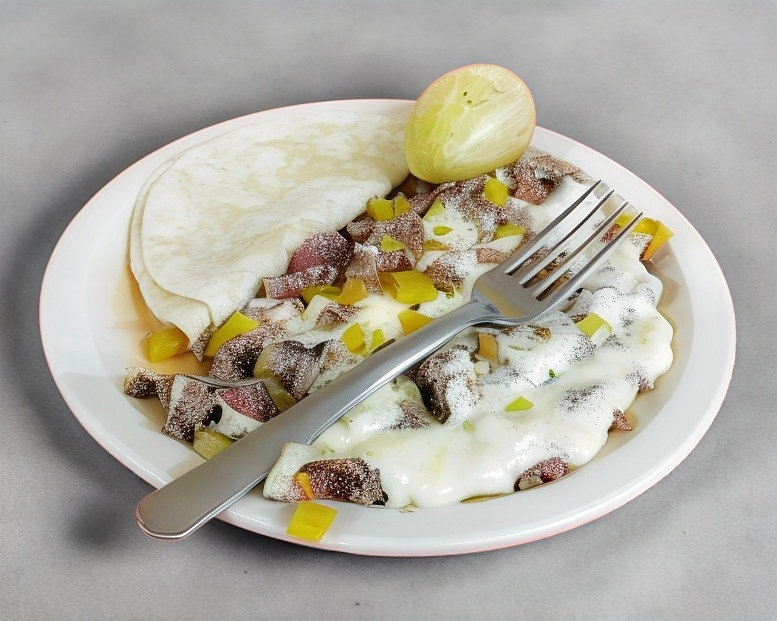 carne con queso.2 tortillas de harina