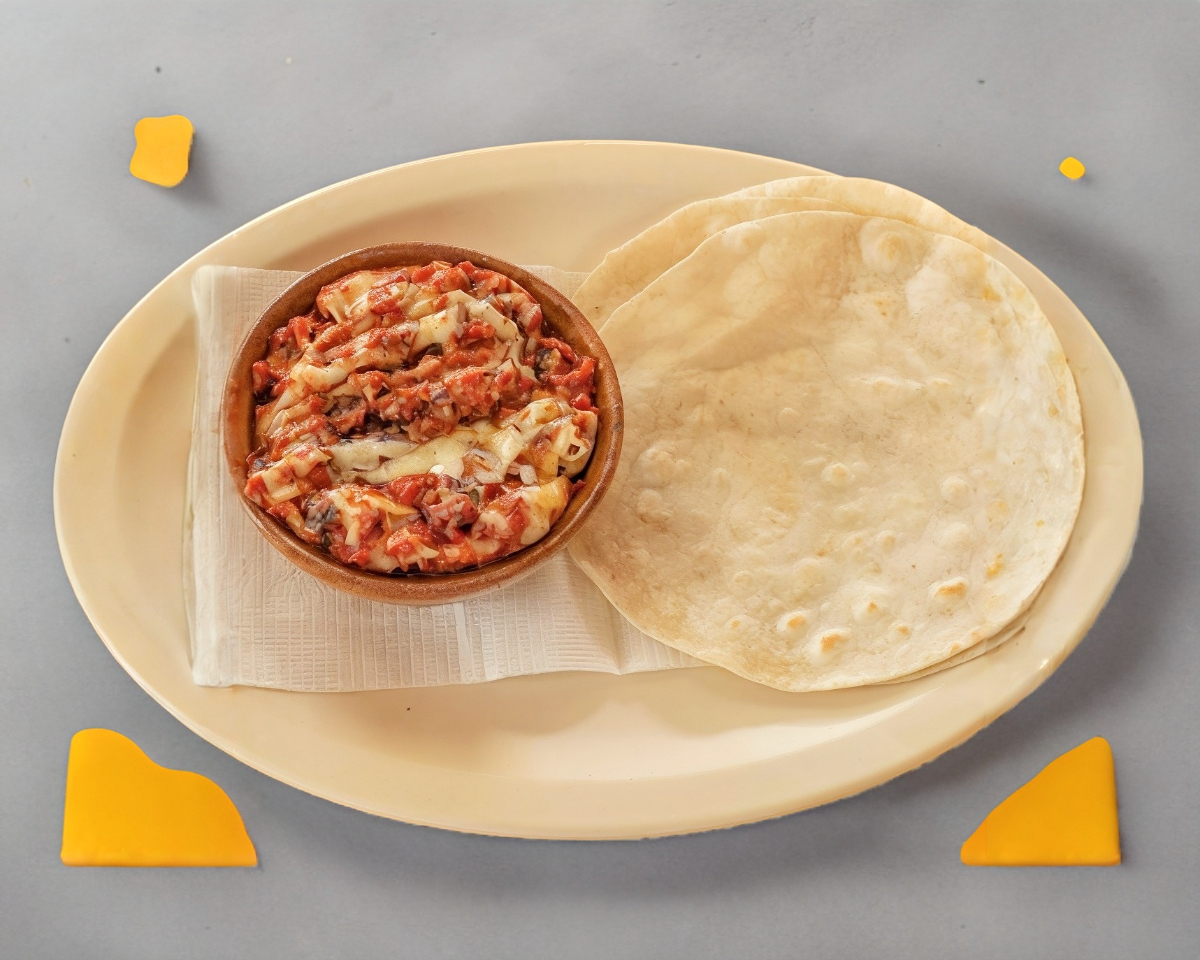 queso con carne y 3 tortillas de harina