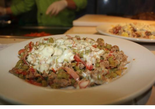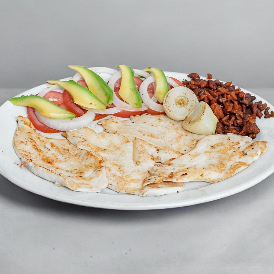 Bistec, chuleta, pastor, pimiento, cebollitas, queso y aguacate..es un platillo