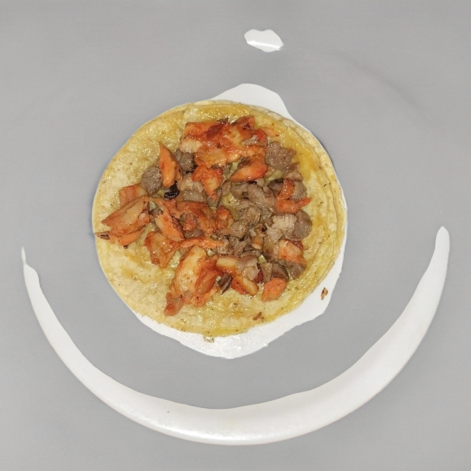pastor, bistec, piña, tocino y queso.4 tortillas de harina. porcion