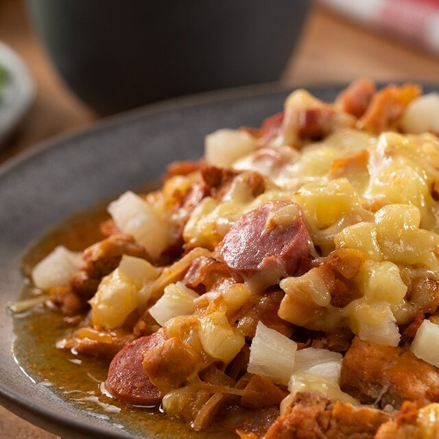 Queso fundido con pollo.