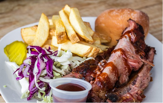350Gr de costilla de cerdo ahumadas acompañadas de papas a la francesa , ensalada coleslaw, pepinillos y panecillos, con toque de salsa BBQ.
