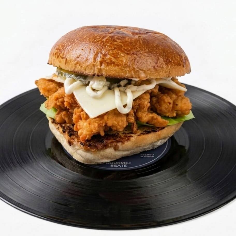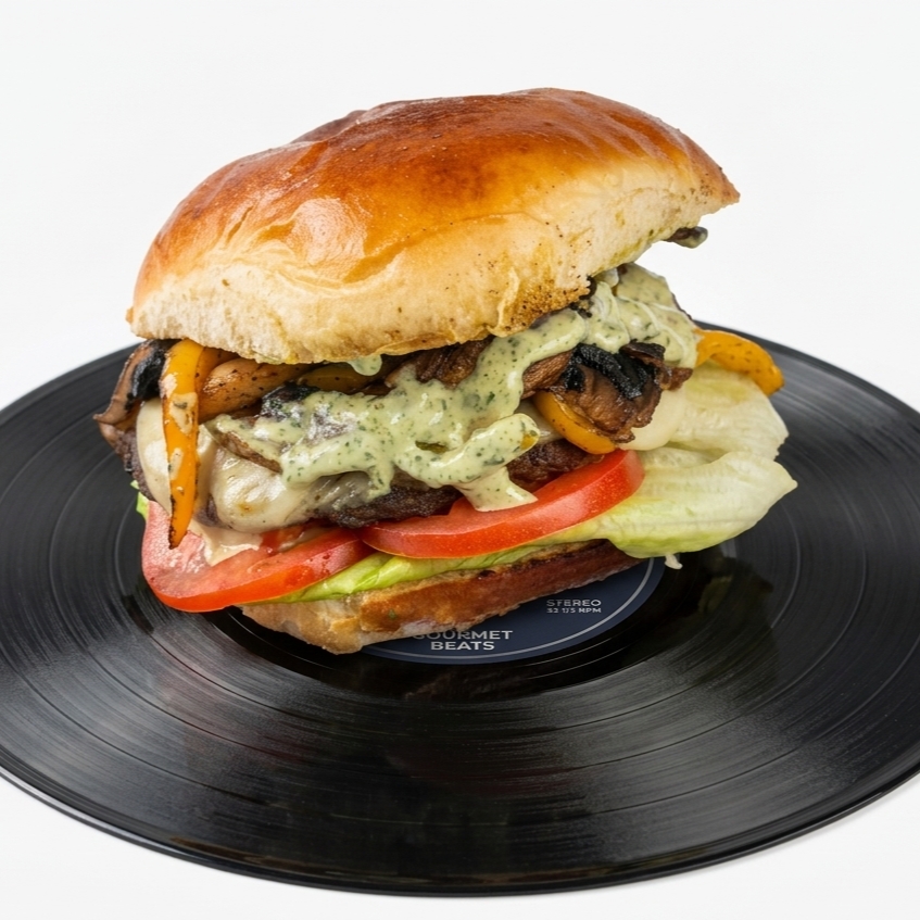 El "beat" básico que nunca falla, carne selecta, queso suizo fundido y un riff de aderezo mayostaza con el ensamble perfecto de vegetales frescos en pan artesanal.