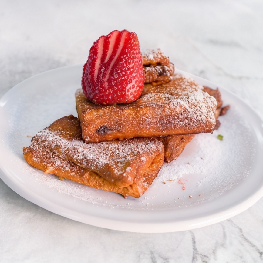 Rollitos de pan con relleno a elegir (nutella o queso philadelphia) acompañado de fresas en rebanadas.