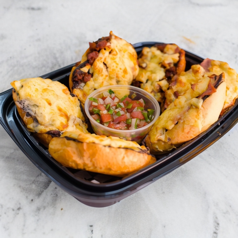 Gratinados con mezcla de quesos y acompañados de pico de gallo.