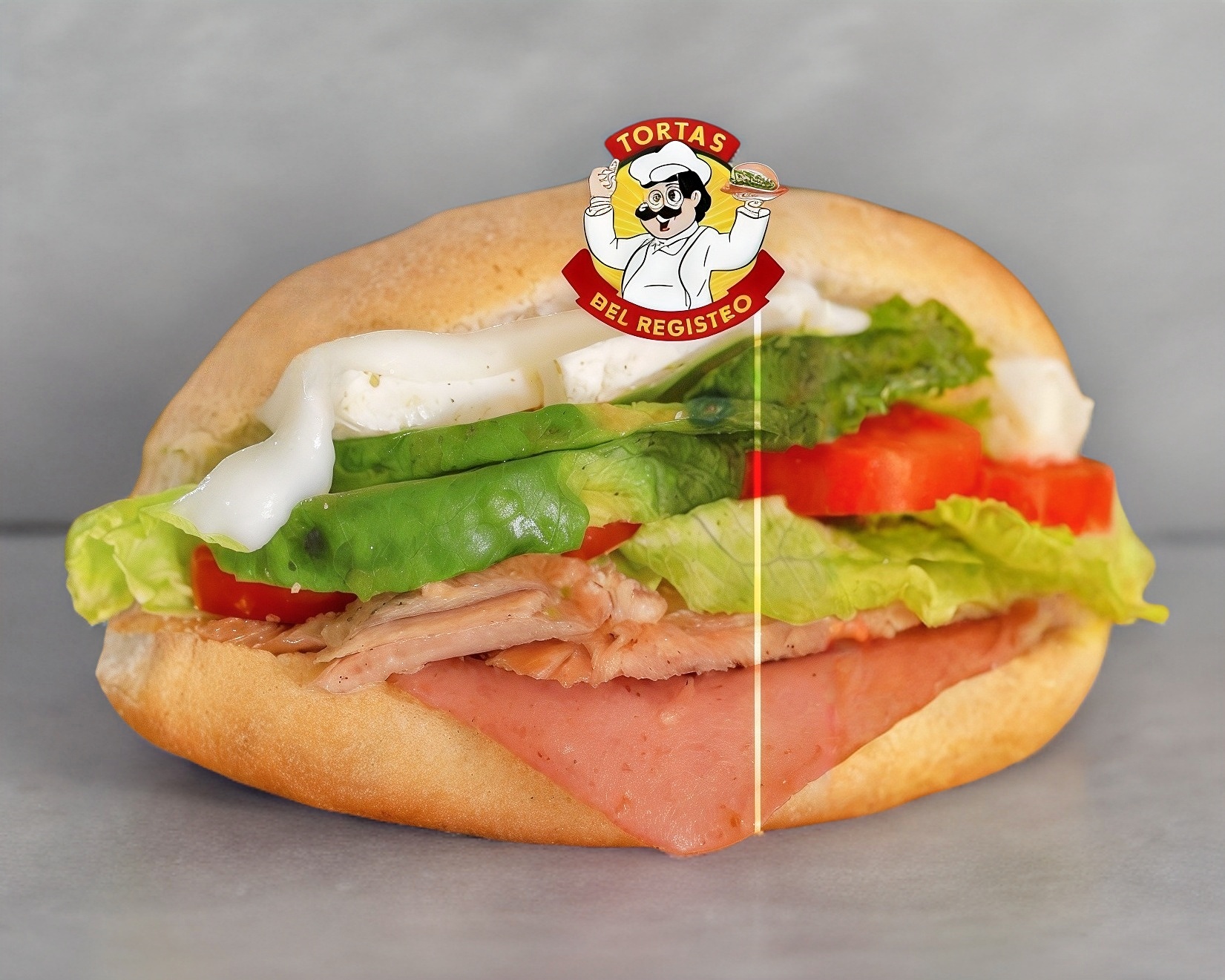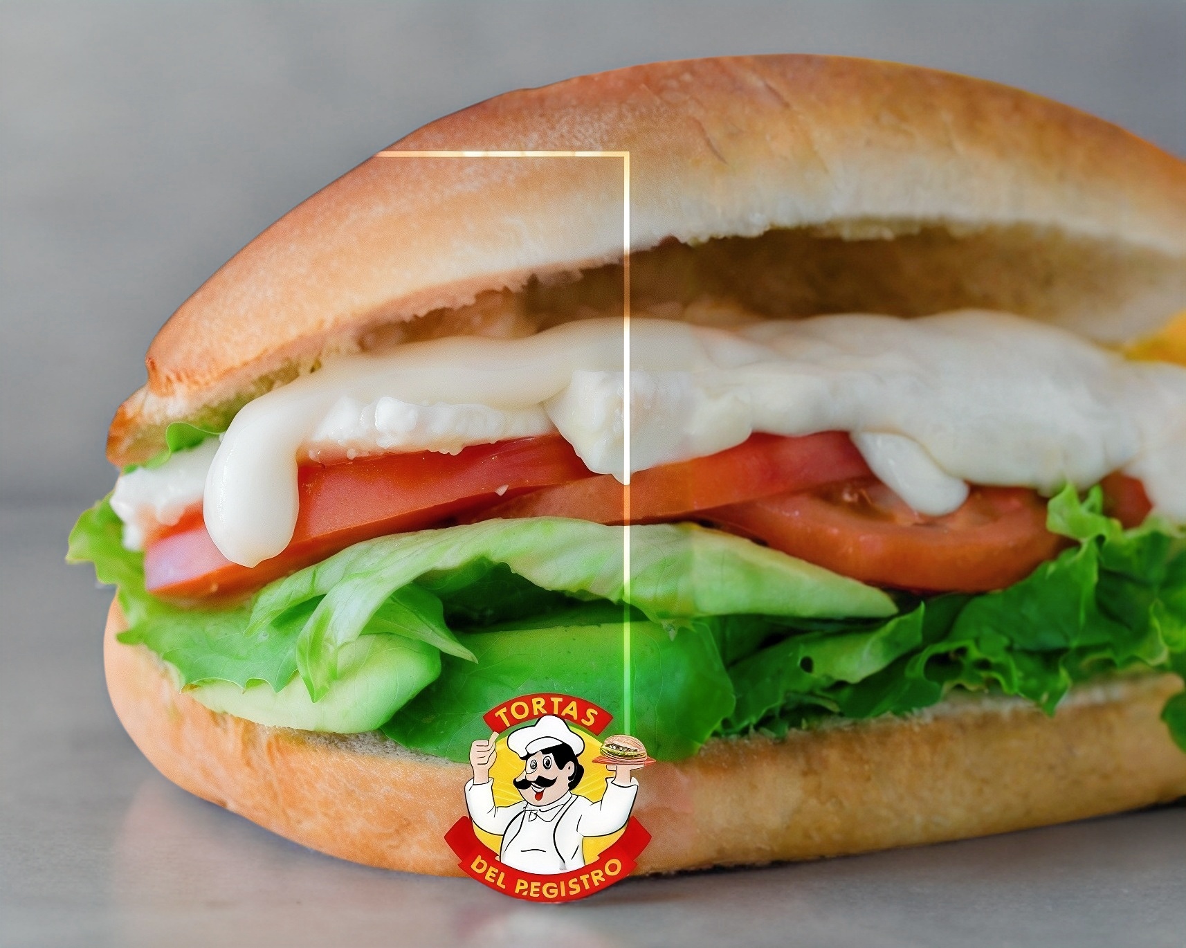 Torta acompañada de lechuga, jitomate, crema, salsa como roja y jalapeños y chiles aparte. (Porción personal)