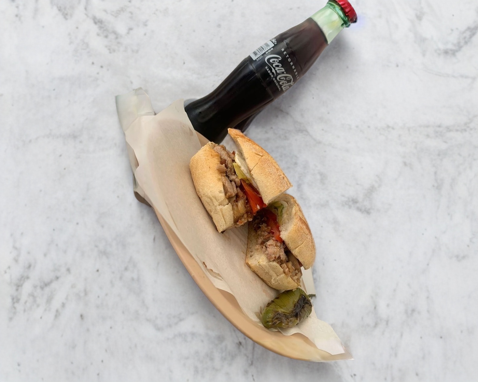 Torta de chorizo con jitomate, cebolla, aguacate y queso
