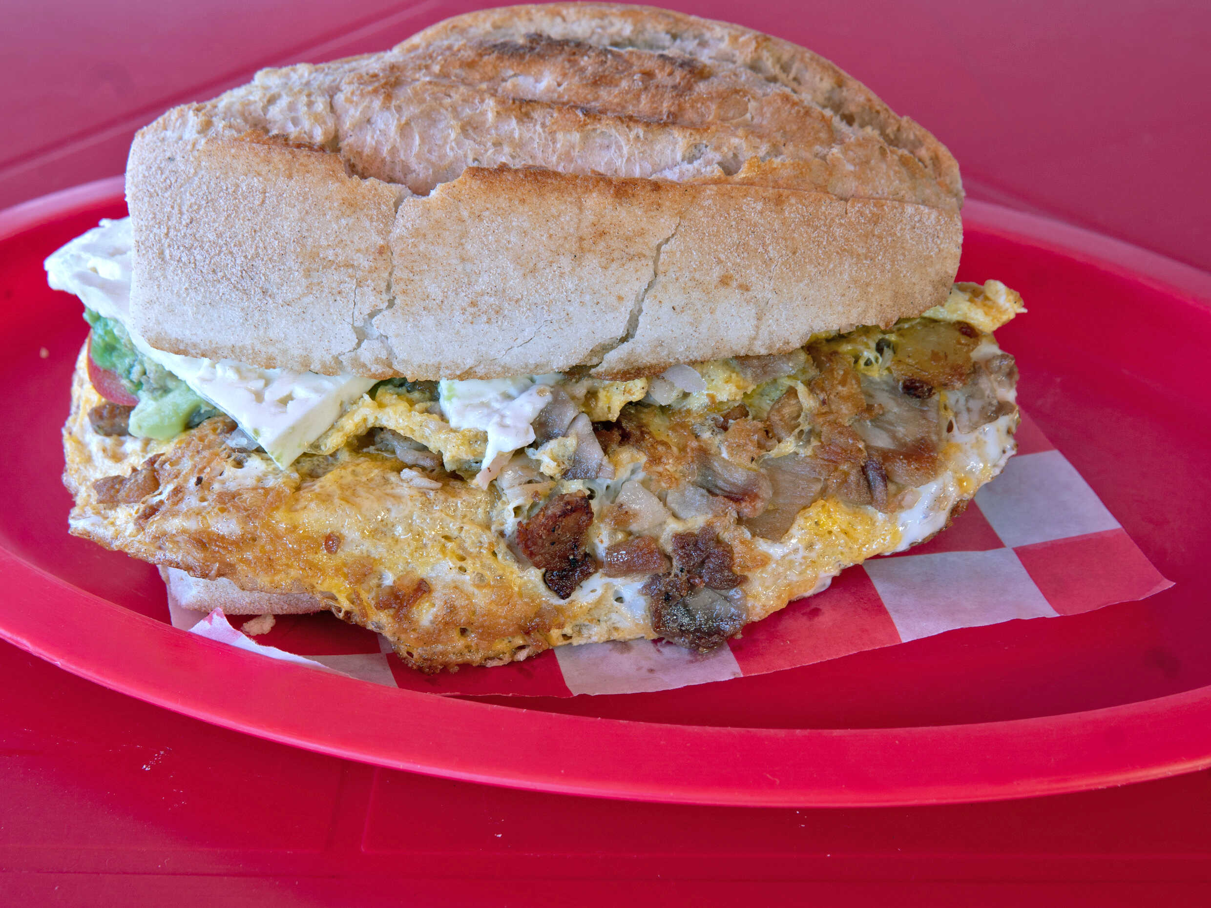 Jitomate, cebolla, aguacate, queso blanco.