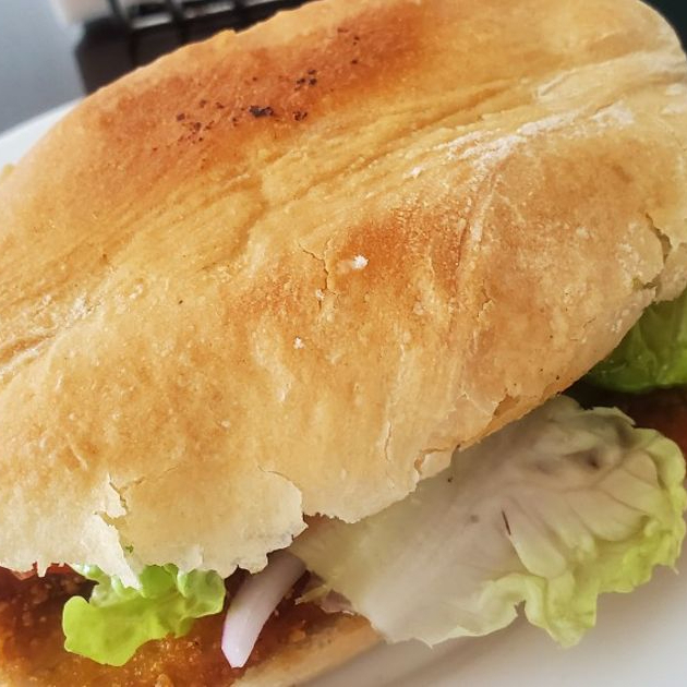 Torta en bolillo, lleva cebolla, jitomate y aguacate.