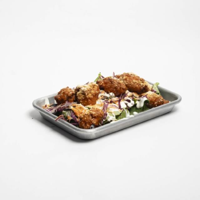 MIX DE LECHUGAS, BONELESS BAÑADOS EN SALSA BUFFALO, ENSALADA DE COL Y ADEREZO RANCH