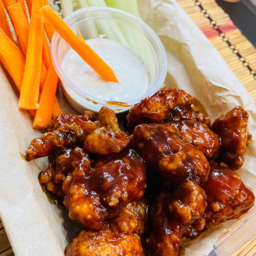 SALSA BBQ, BUFALO, PARMESANO Y MANGO HABANERO