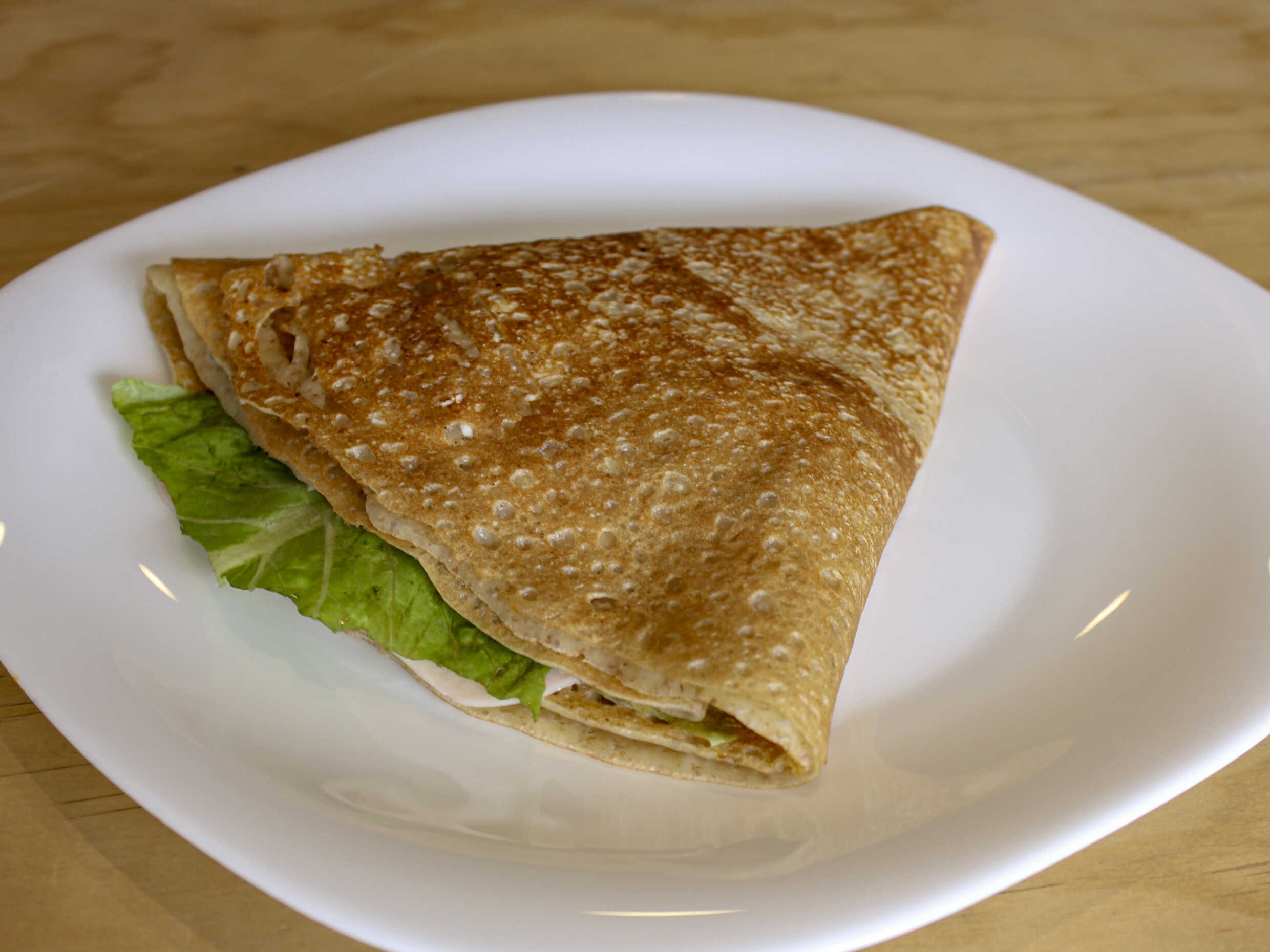 Crepa de philadelphia con pechuga de pavo ahumada y lechuga (todas nuestras crepas llevan pimienta).